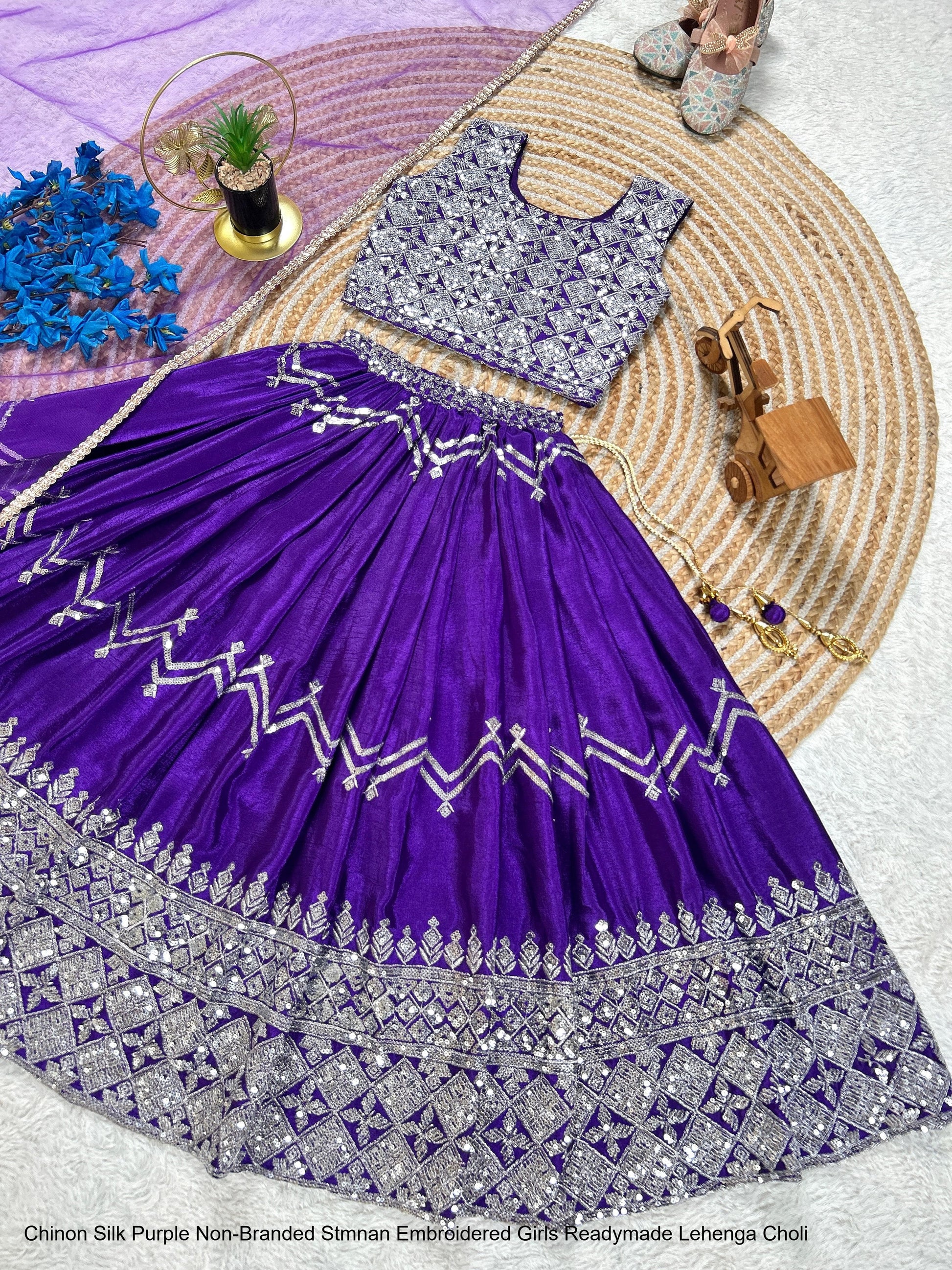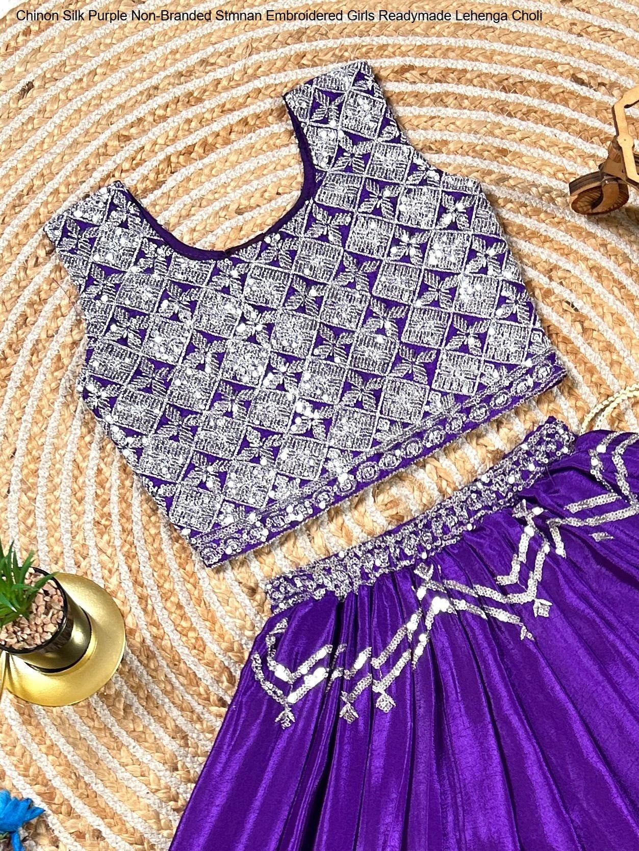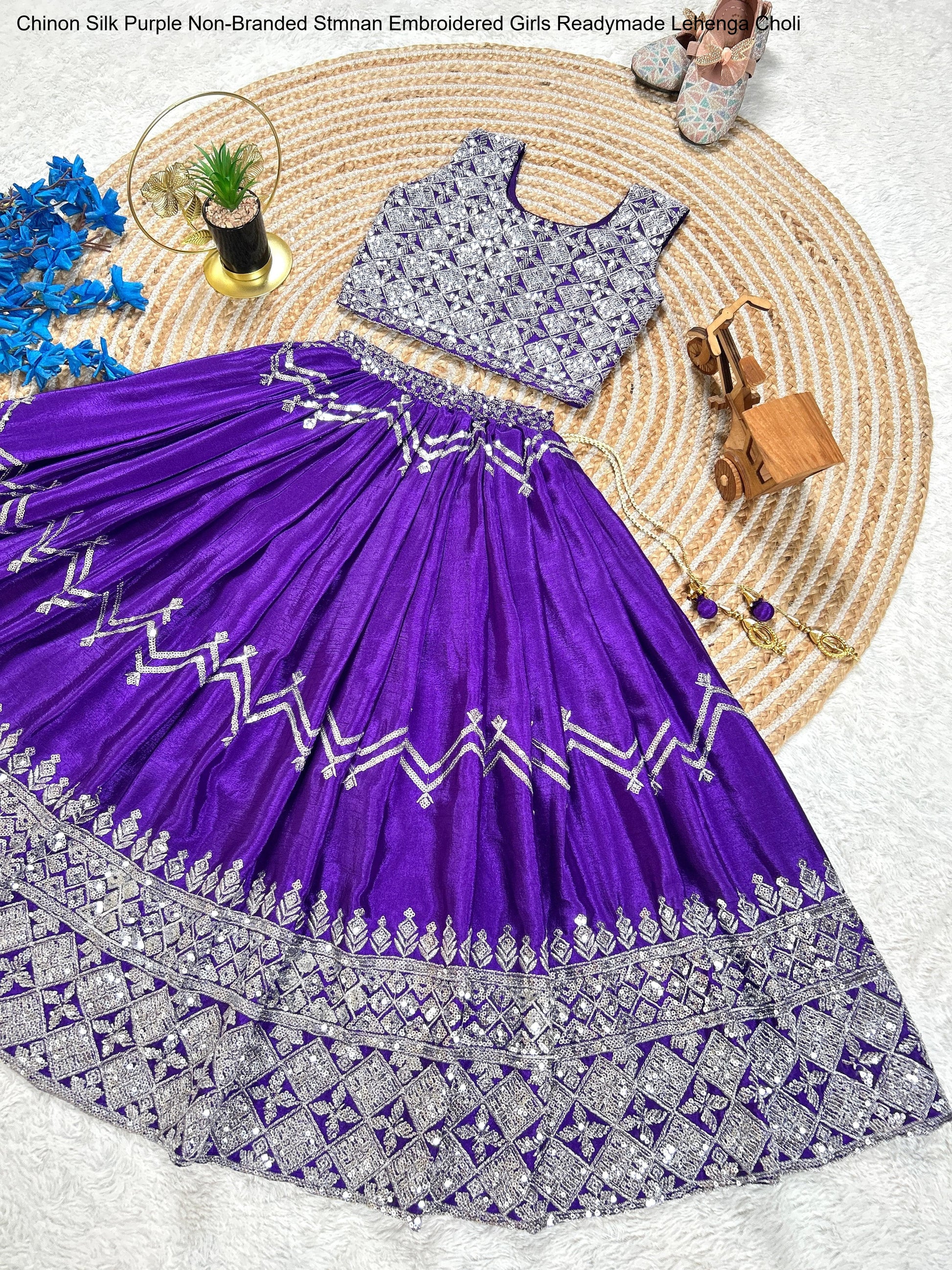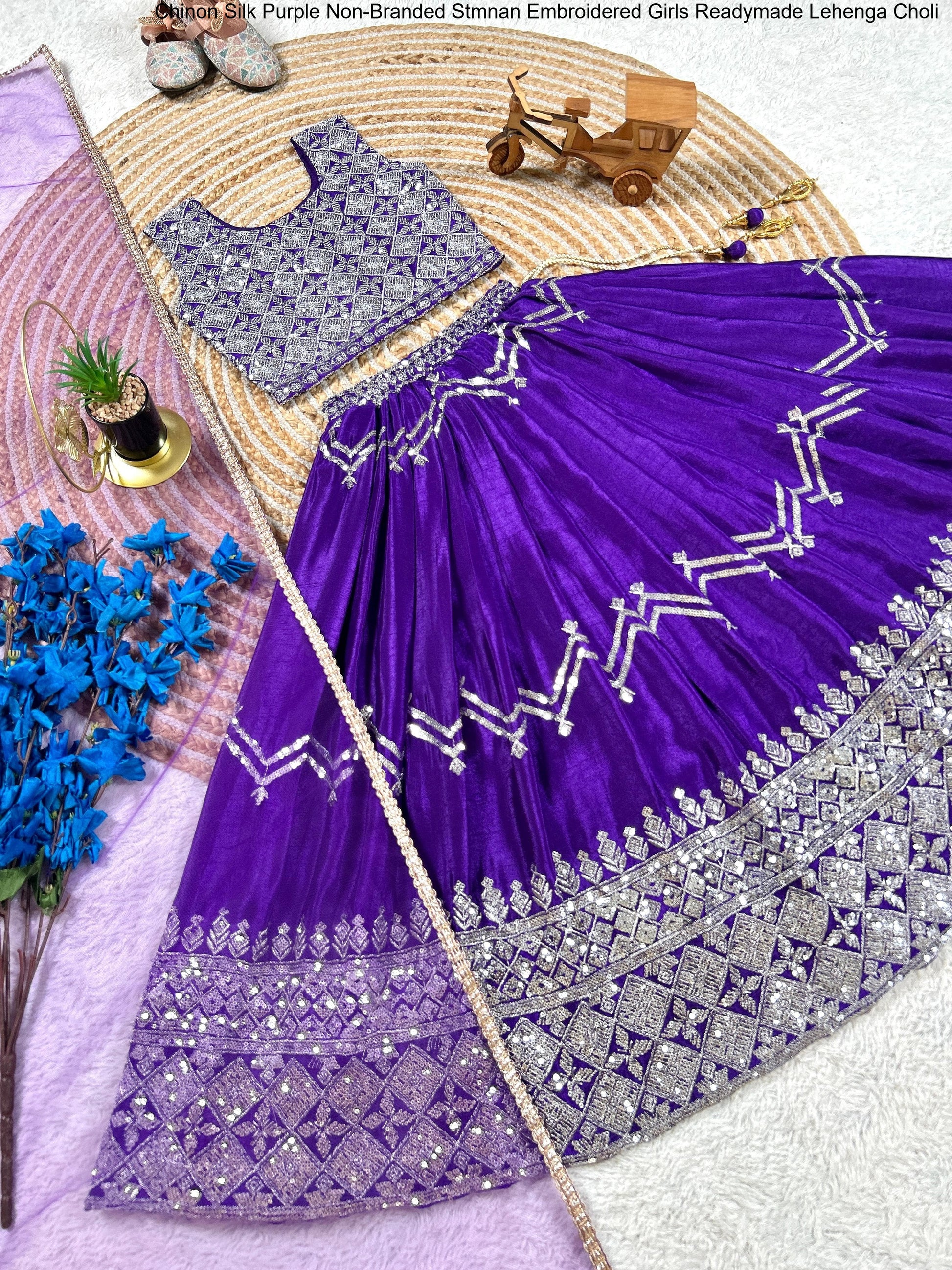 Chinon Silk Purple Non-Branded Stmnan Embroidered Girls Readymade Lehenga Choli