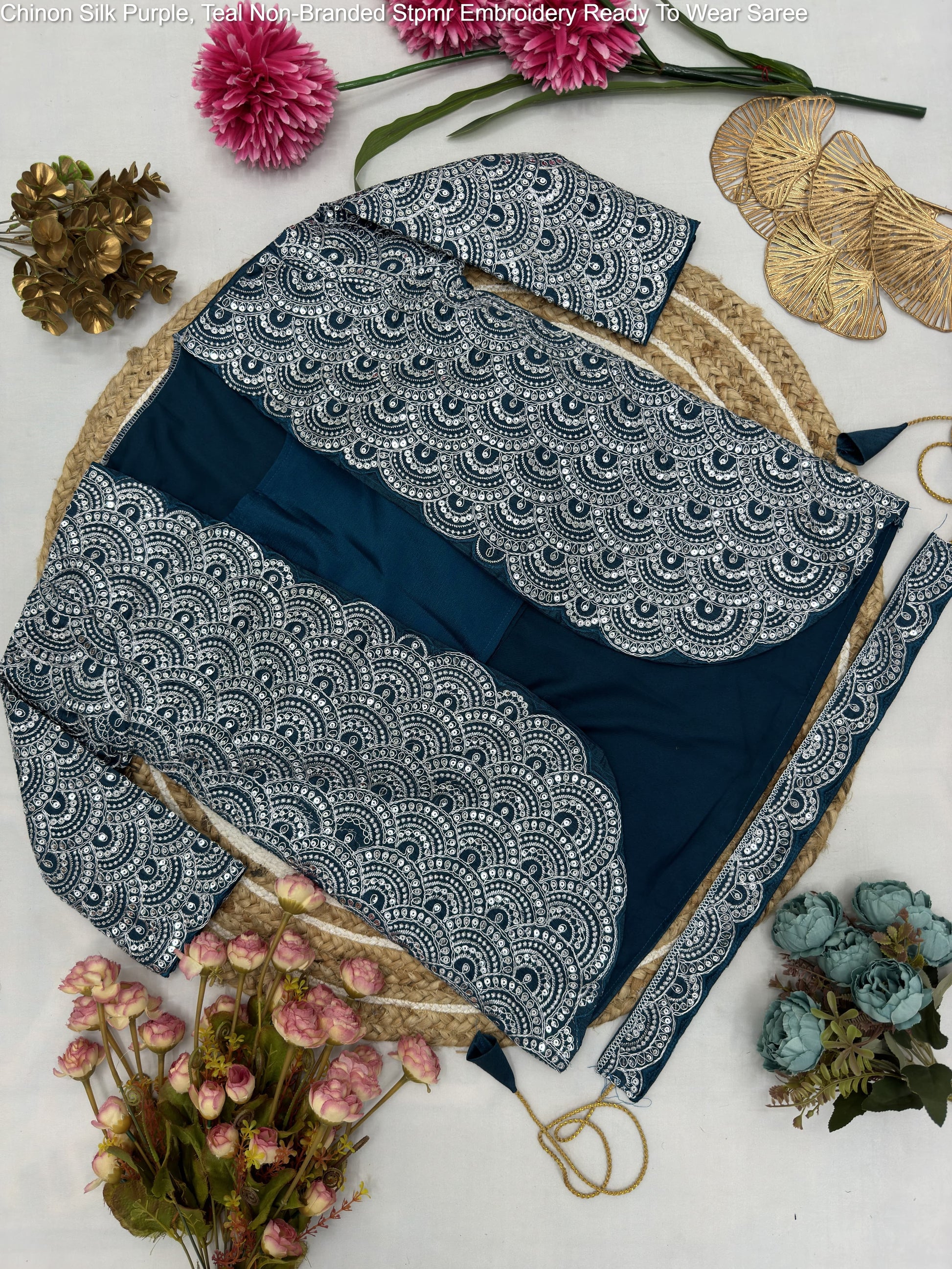 - Chinon Silk Purple, Teal Non-Branded Stpmr Embroidery Ready To Wear Saree Dealer Ahmedabad Surat Wholesale Gujarat India Lowest Price Best Quality Buy Purchase Shipping Kurta Salwaar Kameez Also free Cash on delivery
