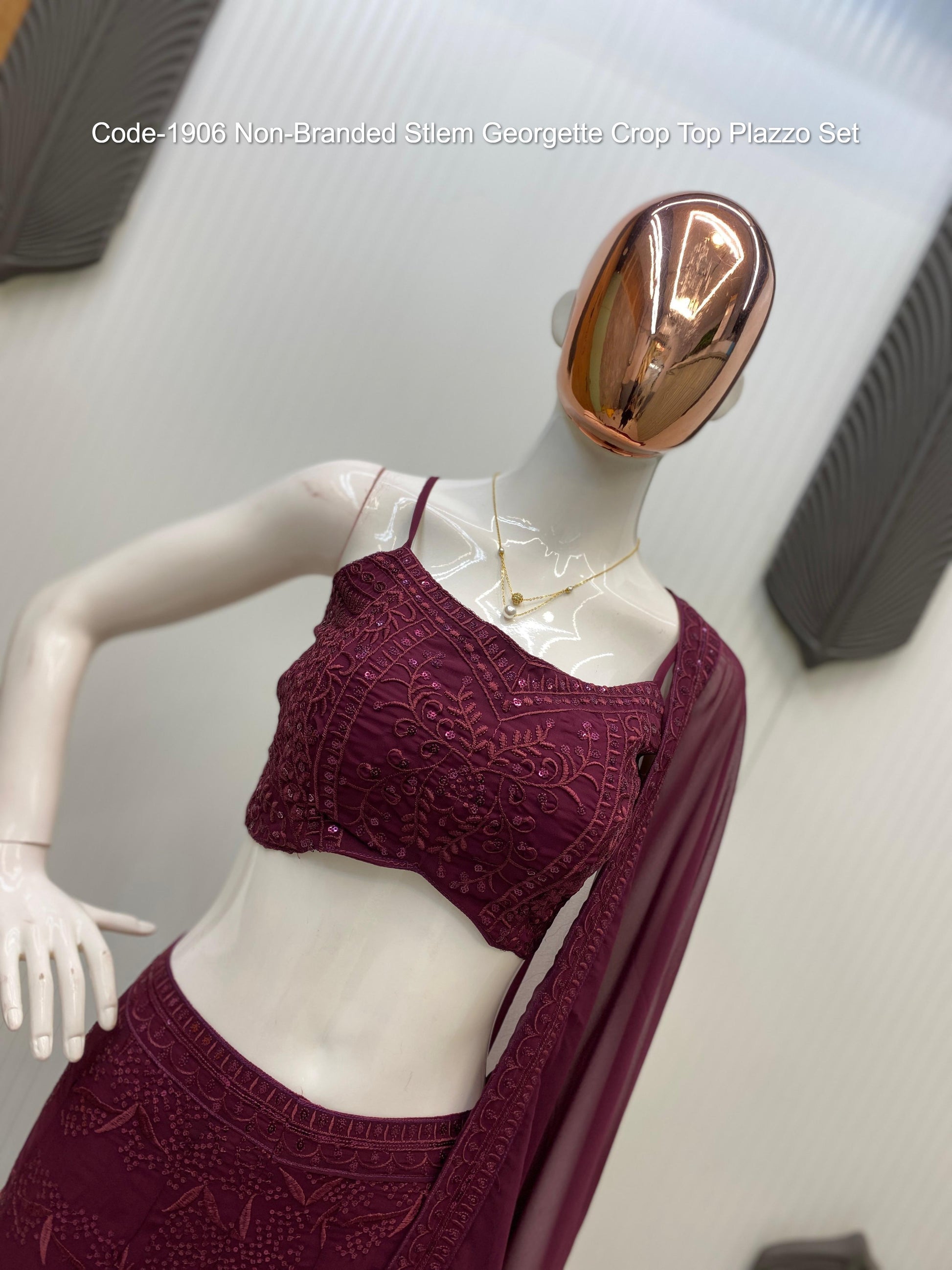 Code-1906 Non-Branded Stlem Georgette Crop Top Plazzo Set