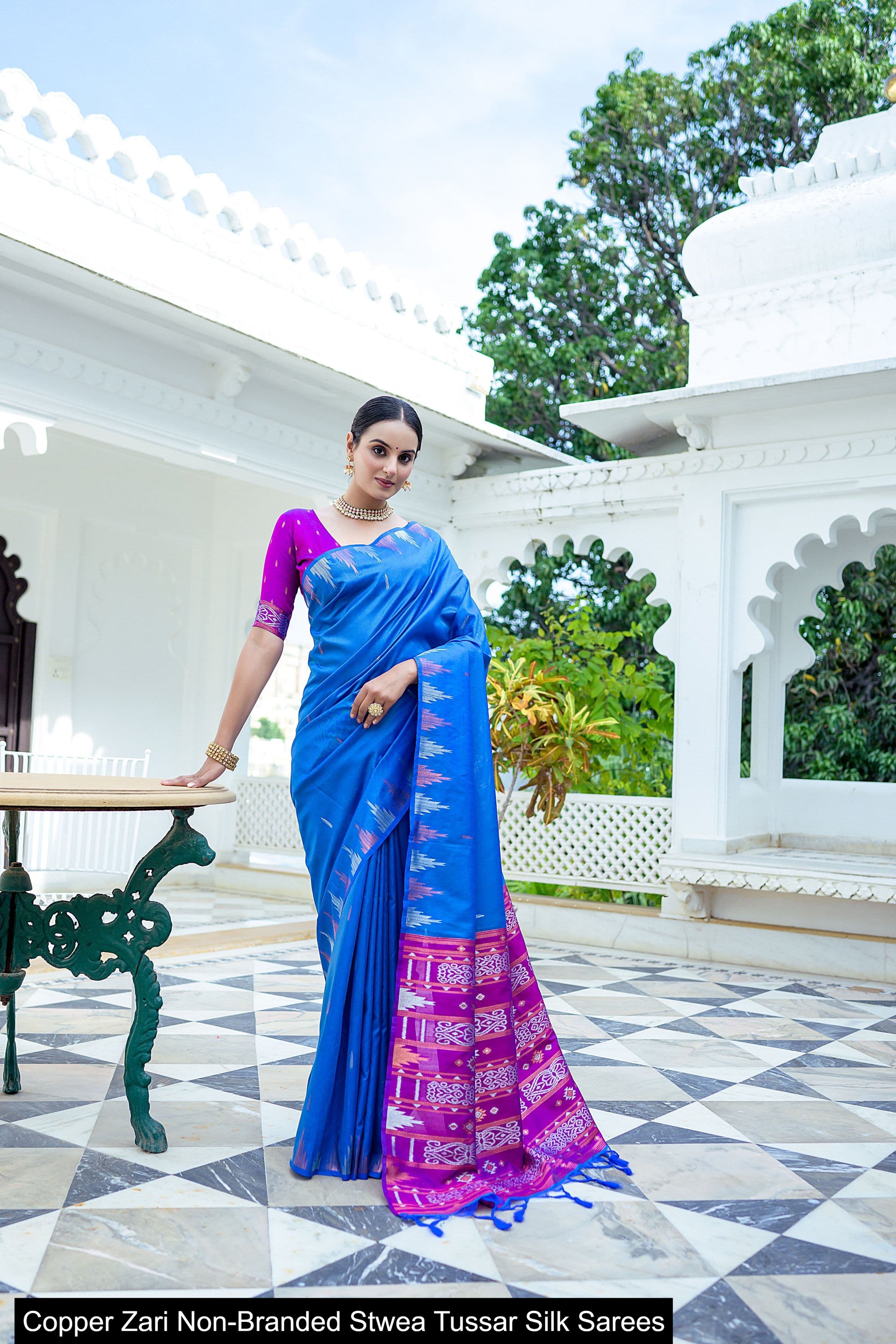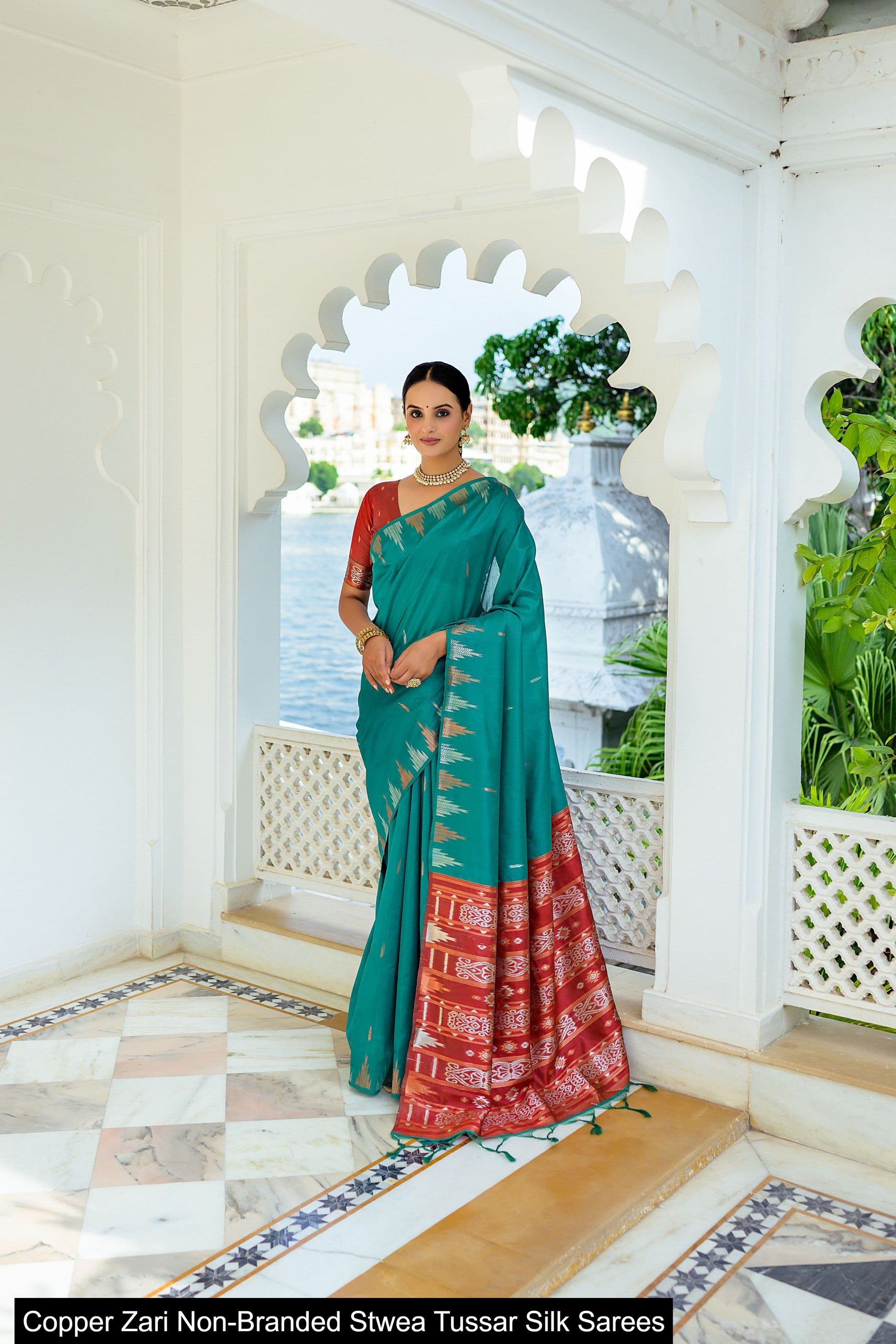 Copper Zari Non-Branded Stwea Tussar Silk Sarees
