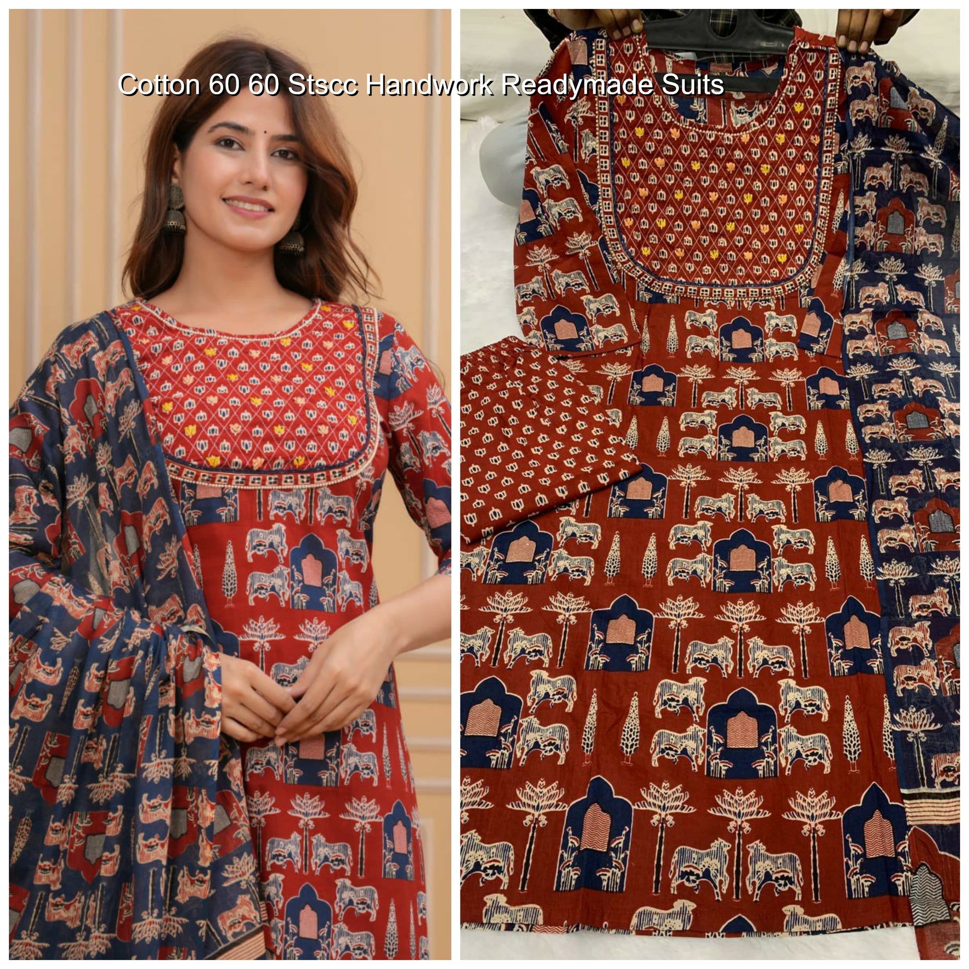 Cotton 60 60 Stscc Handwork Readymade Suits