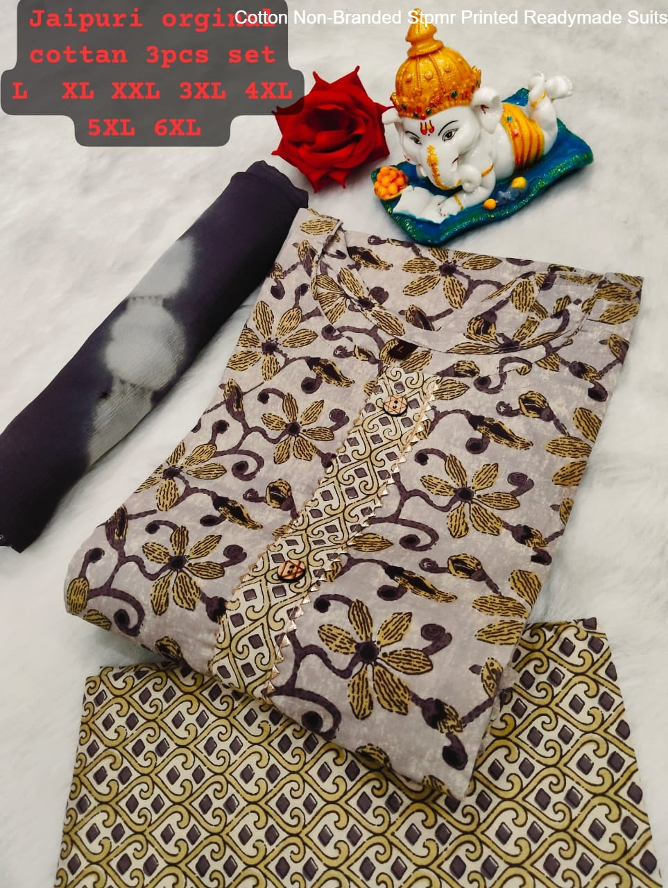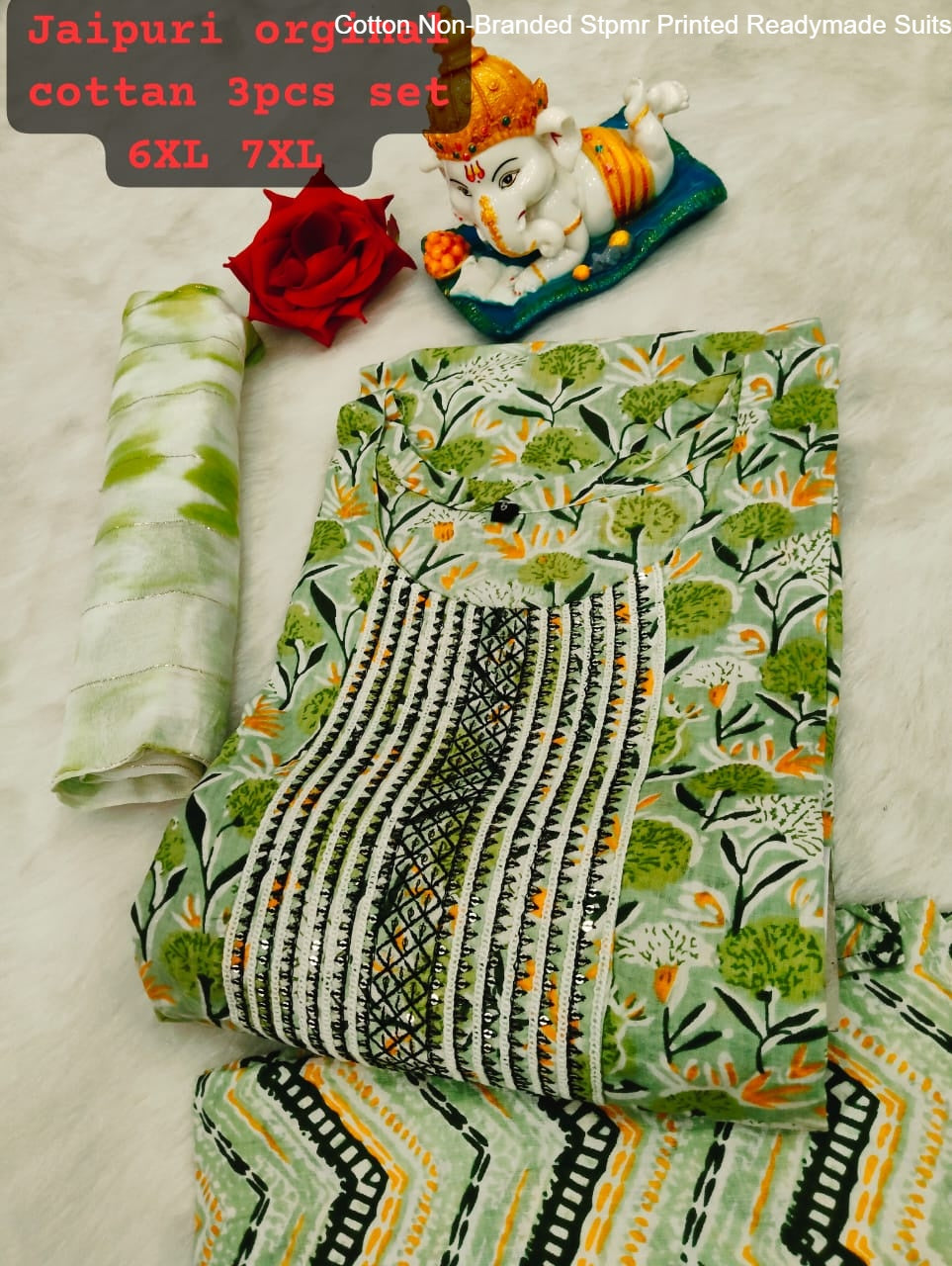 - Fabric Detail: Top : Jaipuri Cotton Beautiful Work Straight Kurti Embroidery Work On Yoke , Bottom : Jaipuri Cotton , Dupatta : Cotton, Colours : Forest Green, Maroon, Khaki Green,Light Pink, Blue, Brown , Size : L, Xl, 2Xl, 3Xl, 4Xl, 5Xl, 6Xl, 7Xl, 8Xl, 9Xl Available Size Mentioned On Photo