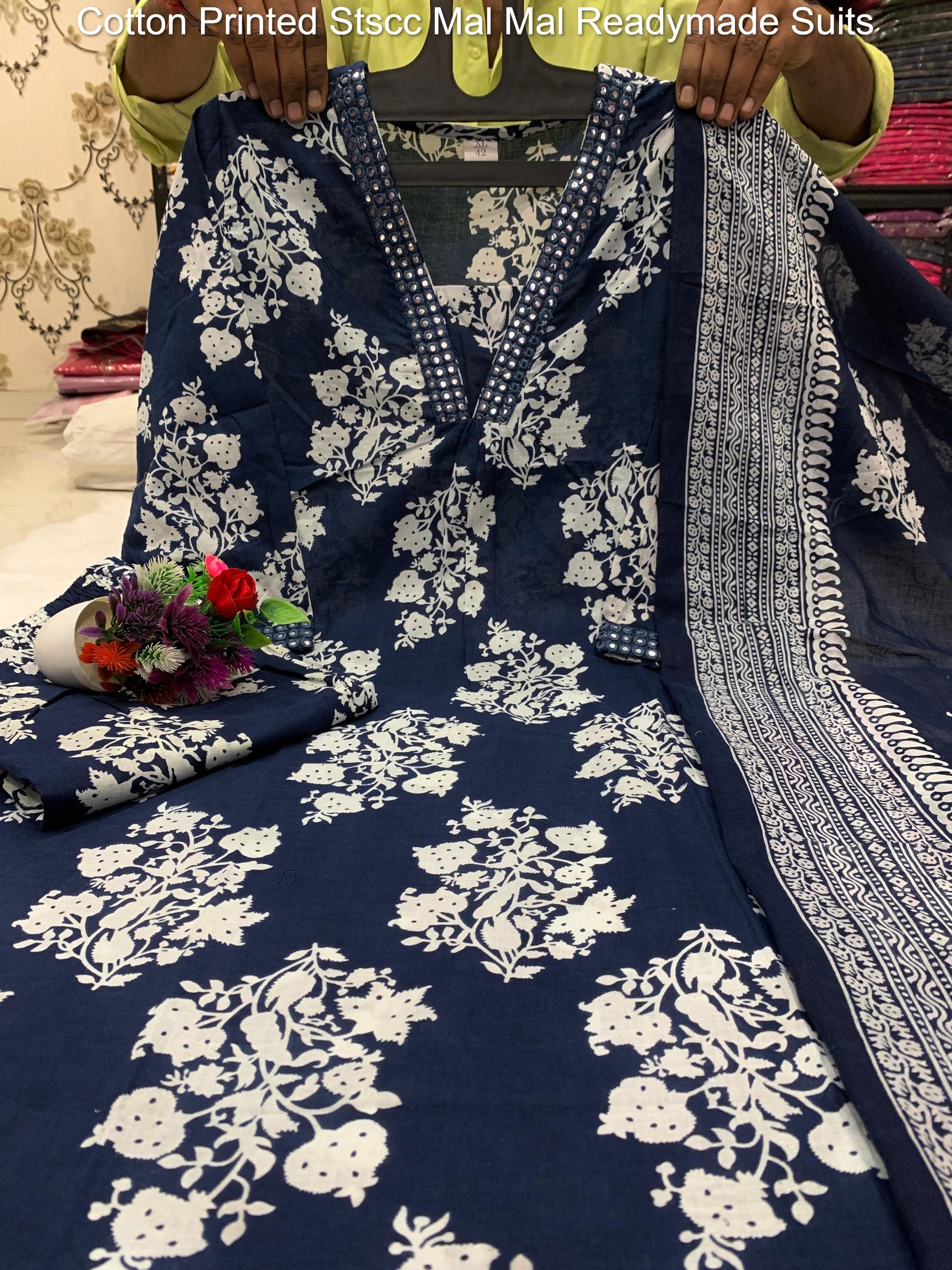 - Fabric Detail: Top : Heavy Mal Mal Cotton Sperad Some Magic To Your Ethnic Printed , Bottom : Heavy Mal Mal Cotton , Dupatta : Heavy Cotton , Size : M, L, Xl, 2Xl, 3Xl