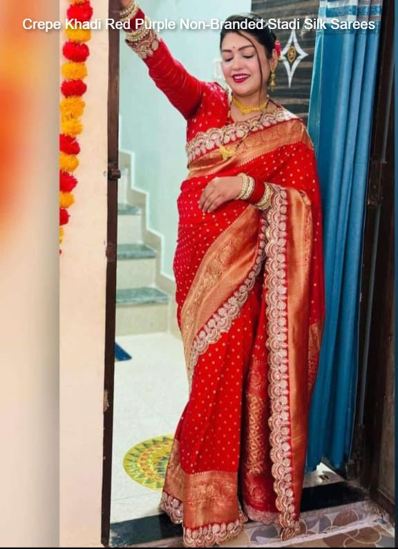 - Crepe Khadi Red Purple Non-Branded Stadi Silk Sarees Dealer Ahmedabad Surat Wholesale Gujarat India Lowest Price Best Quality Buy Purchase Shipping Kurta Salwaar Kameez Also free Cash on delivery