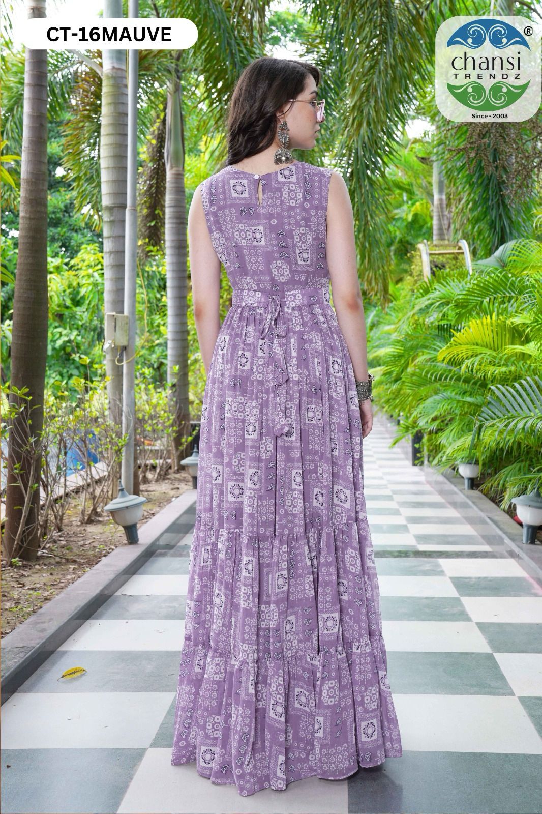 Ct-16 Mauve Chansi Trendz Georgette One Piece Gown
