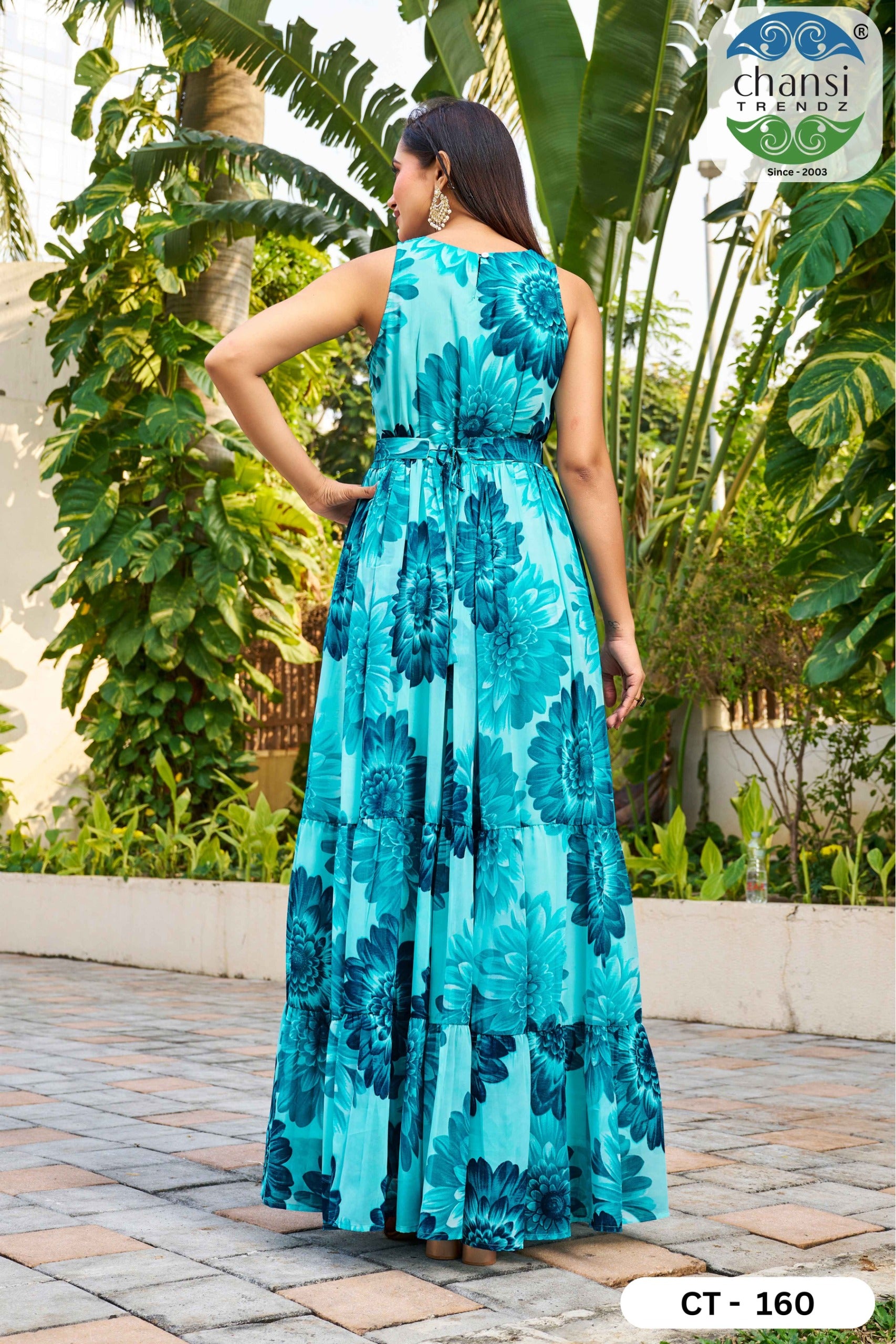 - Ct-160 Elegance Chansi Trendz Georgette One Piece Gown Dealer Ahmedabad Surat Wholesale Gujarat India Lowest Price Best Quality Buy Purchase Shipping Kurta Salwaar Kameez Also free Cash on delivery