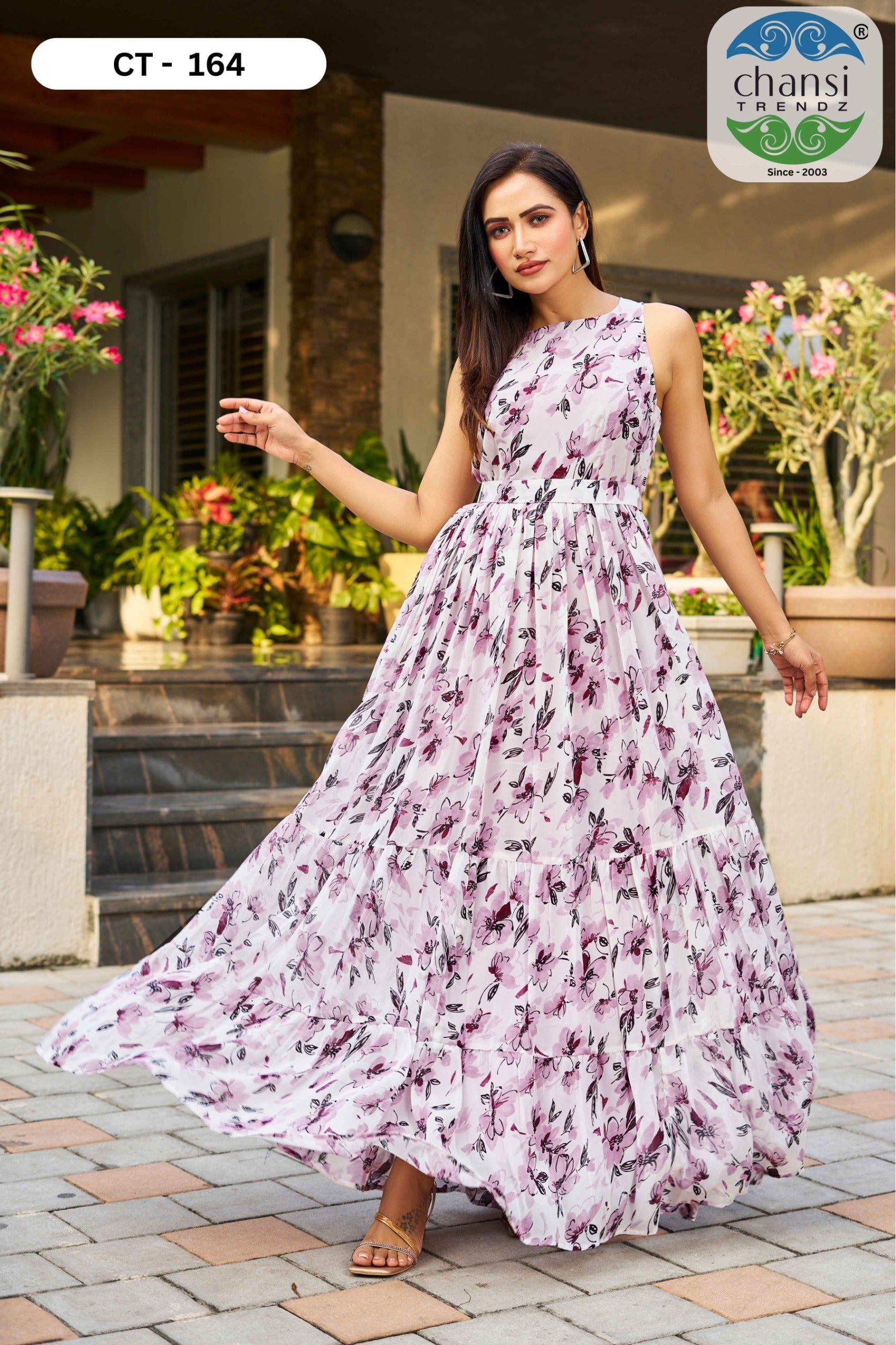 - Ct-164 Elegance Chansi Trendz Georgette One Piece Gown Dealer Ahmedabad Surat Wholesale Gujarat India Lowest Price Best Quality Buy Purchase Shipping Kurta Salwaar Kameez Also free Cash on delivery