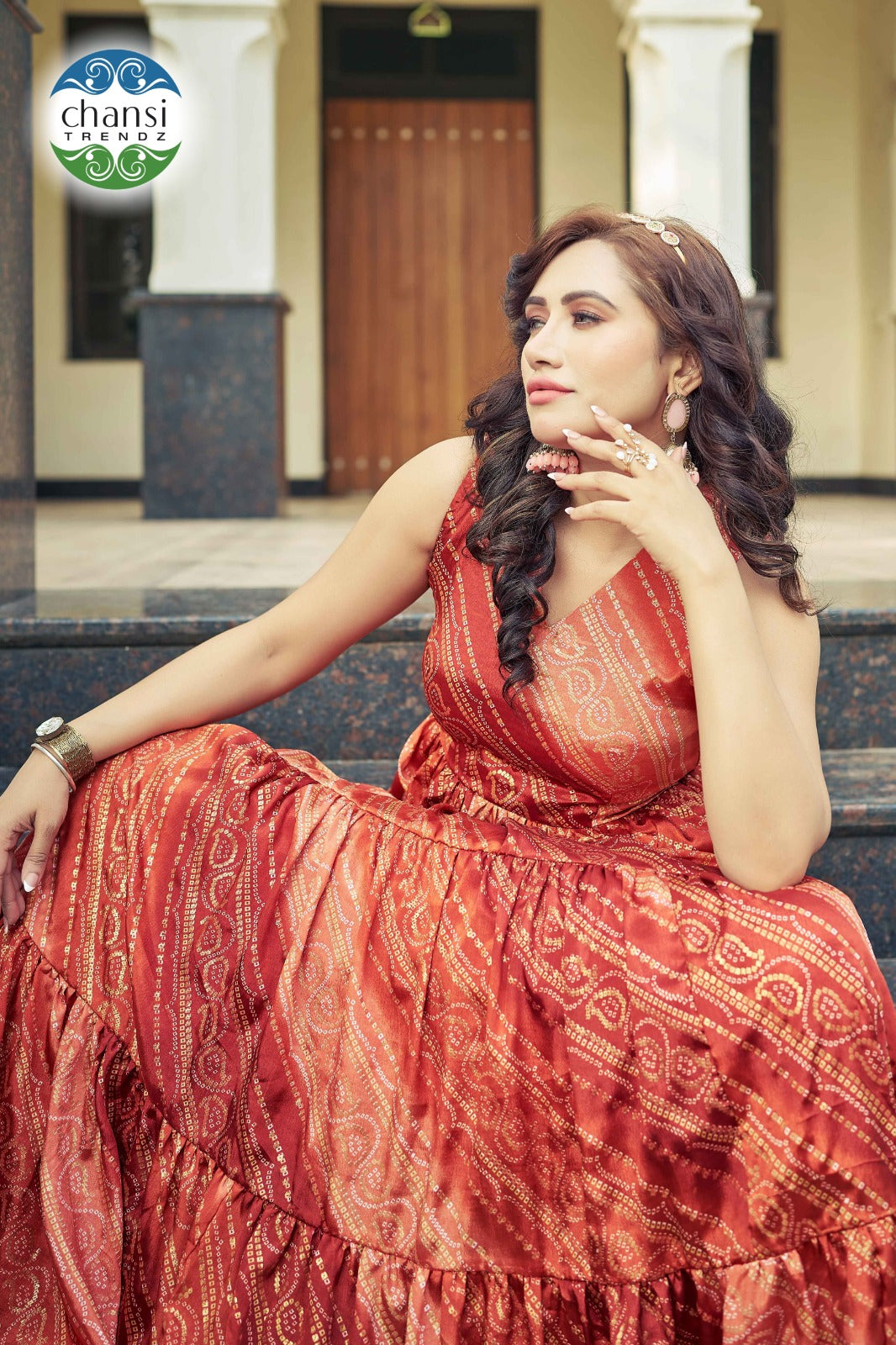 Ct-440 Chansi Trendz Chinon One Piece Gown