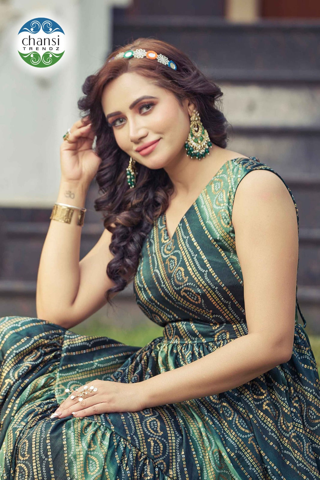 Ct-441 Chansi Trendz Chinon One Piece Gown