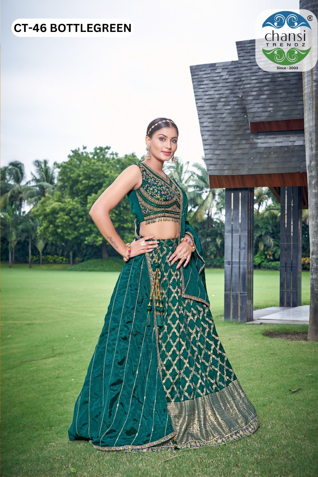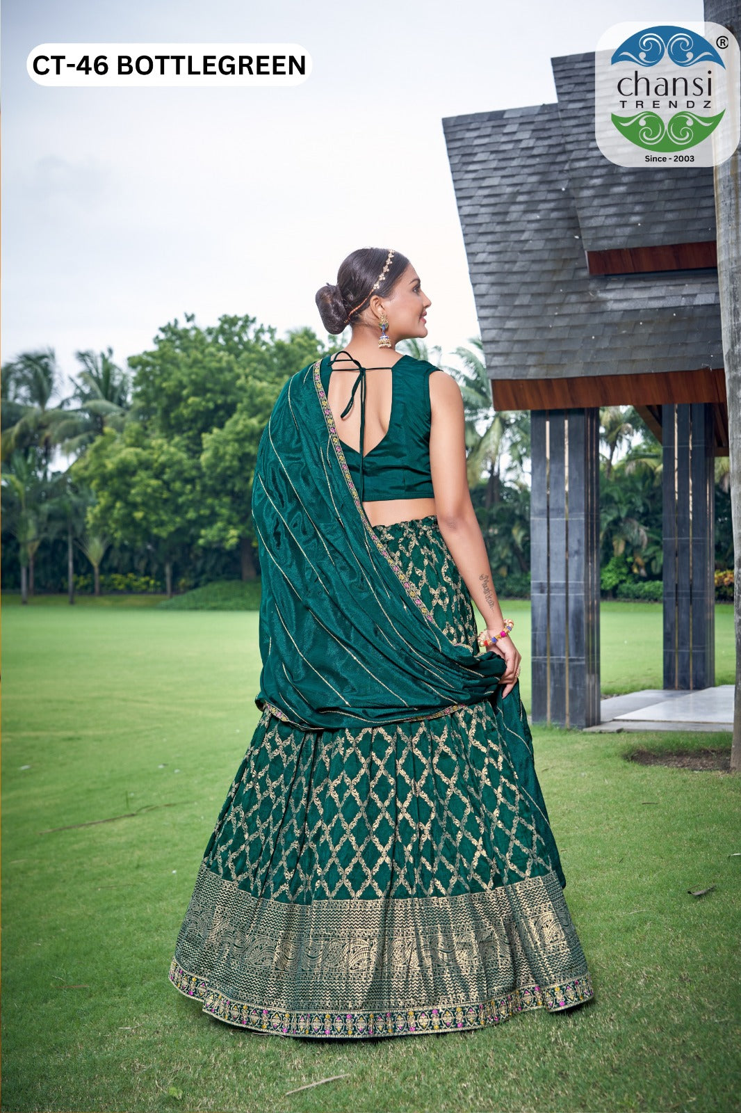 - Ct-46 Bottle Green Chansi Trendz Jacquard Readymade Lehenga Choli Dealer Ahmedabad Surat Wholesale Gujarat India Lowest Price Best Quality Buy Purchase Shipping Kurta Salwaar Kameez Also free Cash on delivery