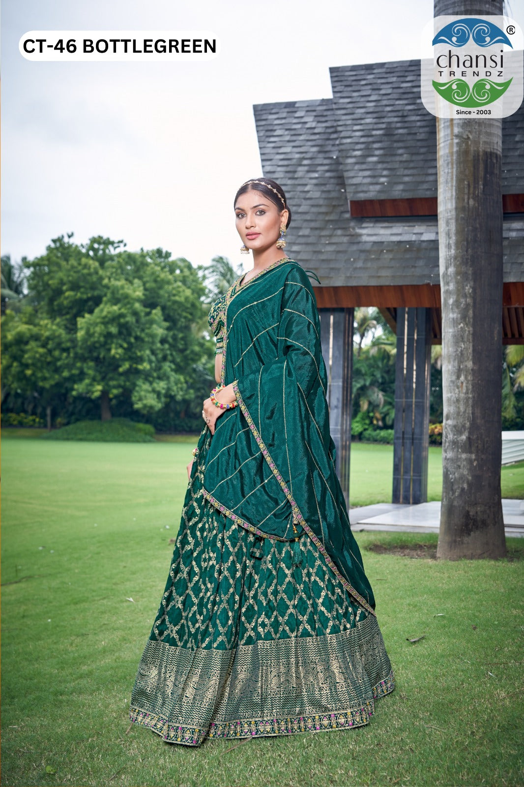 Ct-46 Bottle Green Chansi Trendz Jacquard Readymade Lehenga Choli