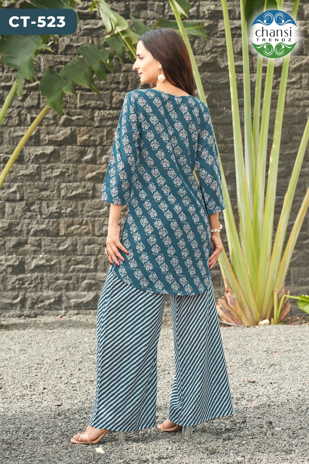 - Ct-523 Siddhalakshmi Chansi Trendz Poly Cotton Co Ord Set Dealer Ahmedabad Surat Wholesale Gujarat India Lowest Price Best Quality Buy Purchase Shipping Kurta Salwaar Kameez Also free Cash on delivery