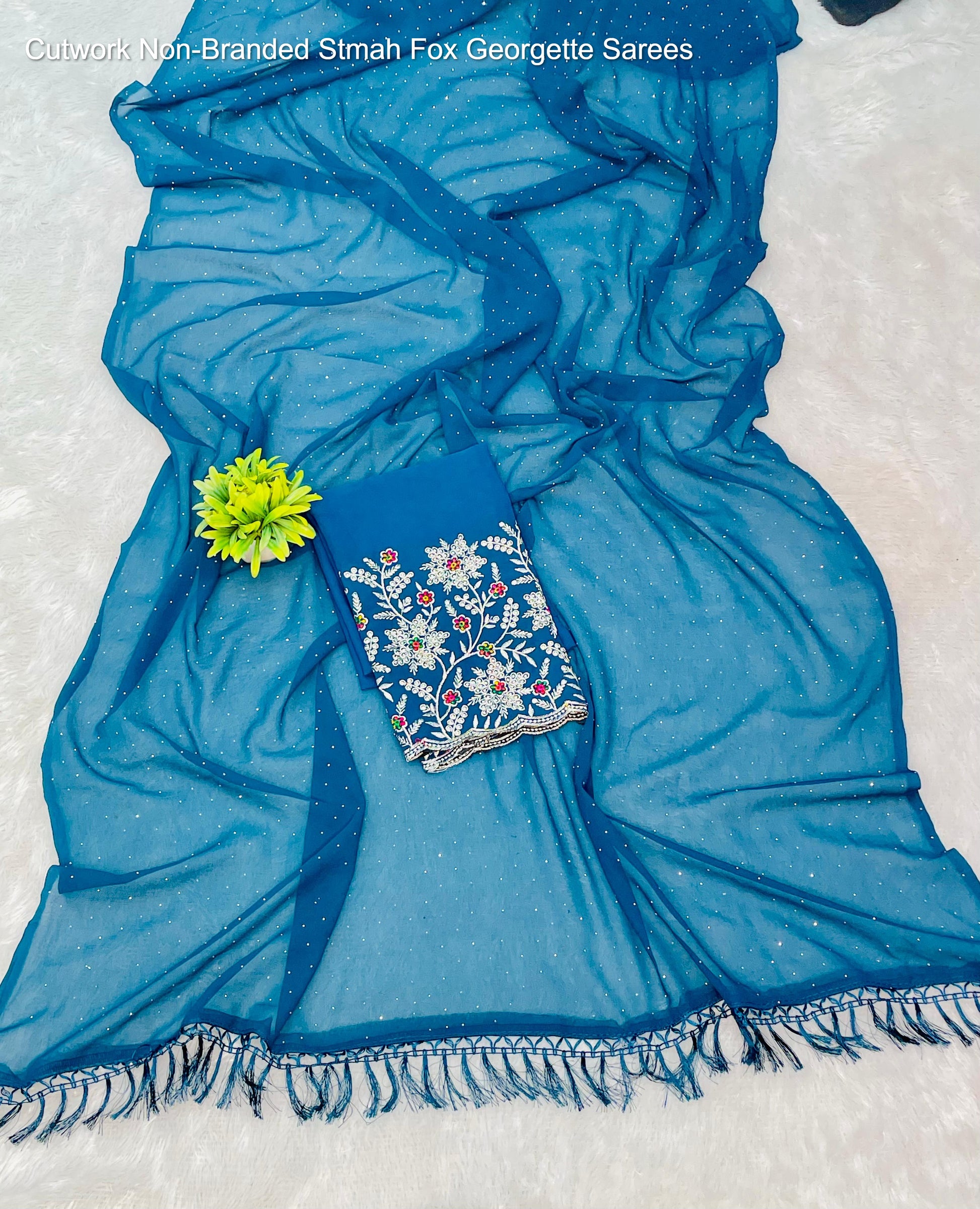 Cutwork Non-Branded Stmah Fox Georgette Sarees