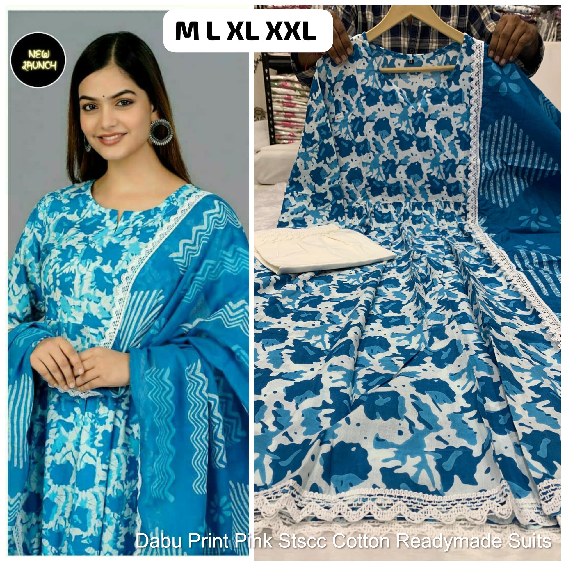 - Fabric Detail: Top : Cotton Lace On Hem Dabu Print Gown Fully Stitched, Length : 48 Apx, Bottom : Cotton A Semi Elasticated White, Length : 38 Apx, Dupatta : Dabu Cotton Printed First Time Dry Clean Wash , Size : M, L, Xl, 2Xl