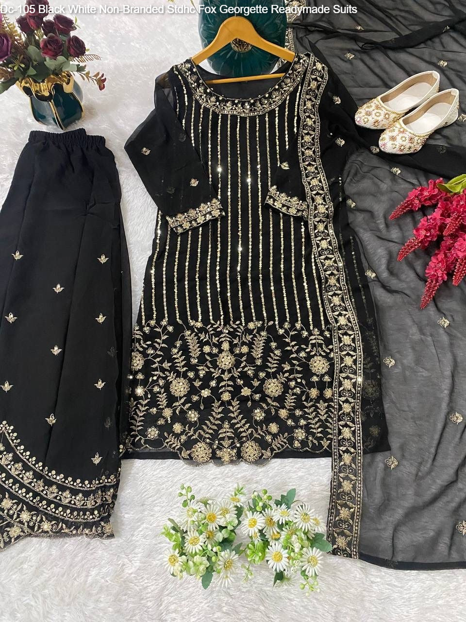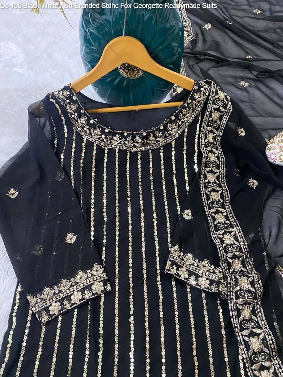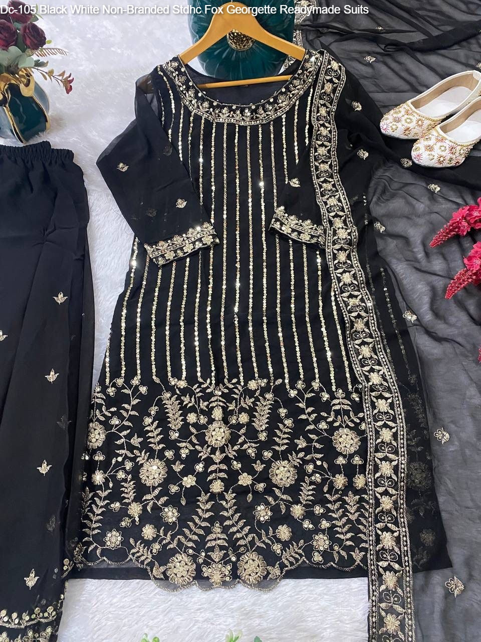 - Dc-105 Black White Non-Branded Stdhc Fox Georgette Readymade Suits Dealer Ahmedabad Surat Wholesale Gujarat India Lowest Price Best Quality Buy Purchase Shipping Kurta Salwaar Kameez Also free Cash on delivery