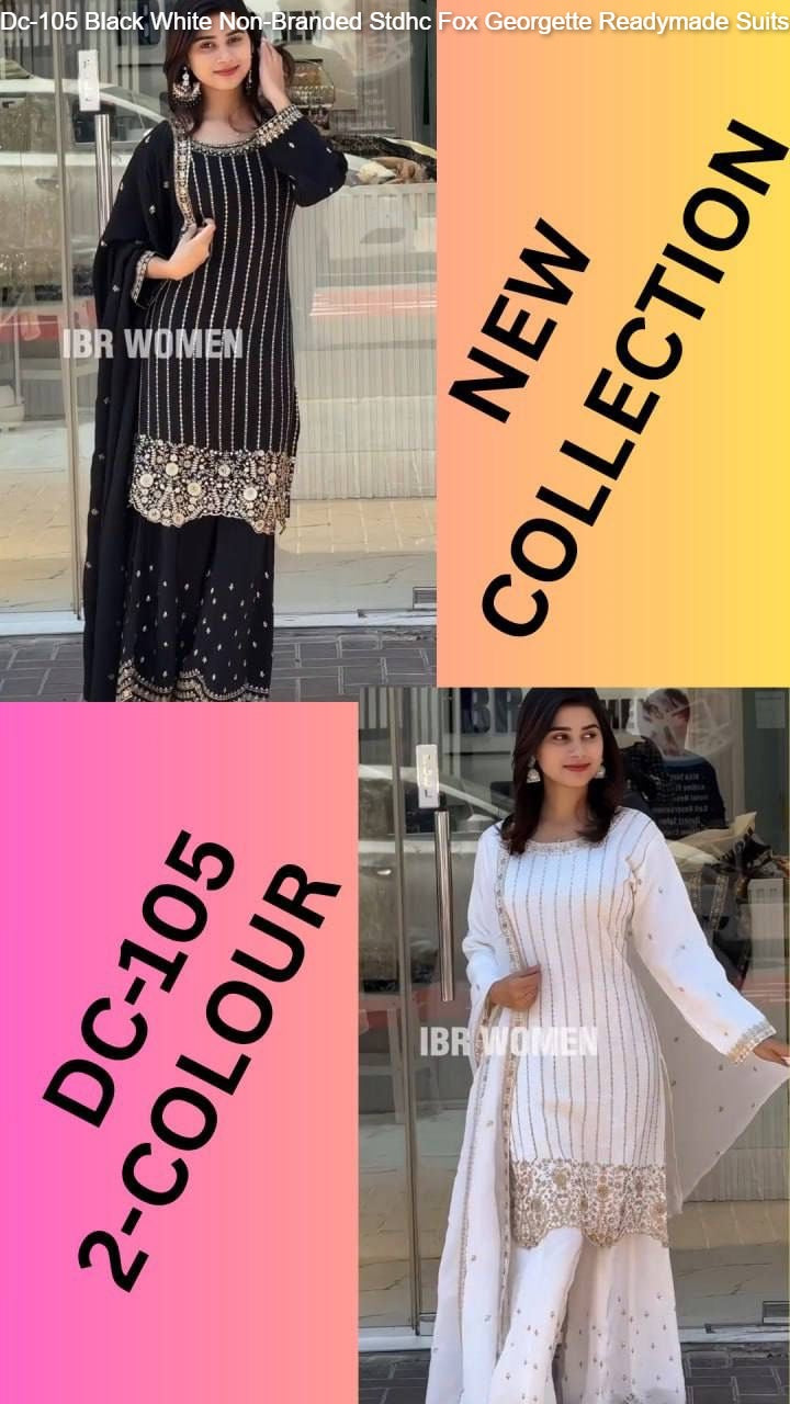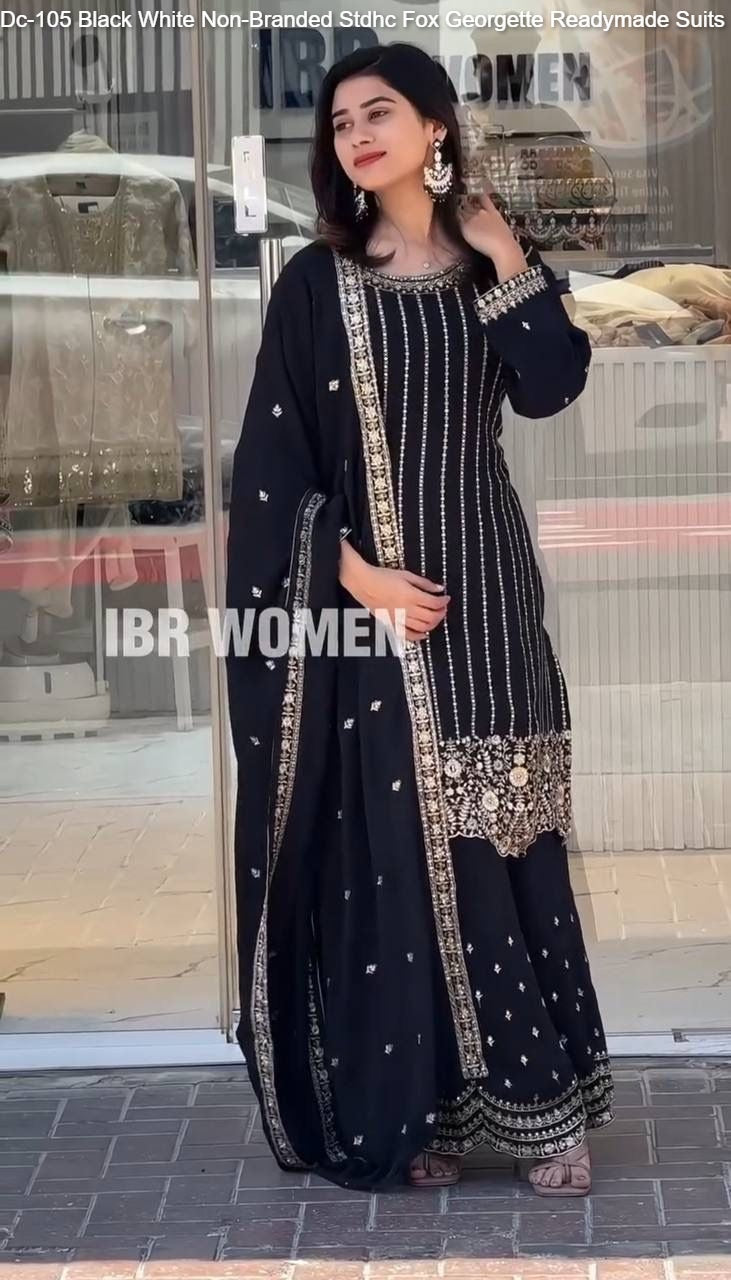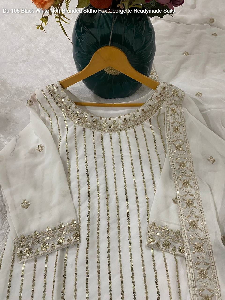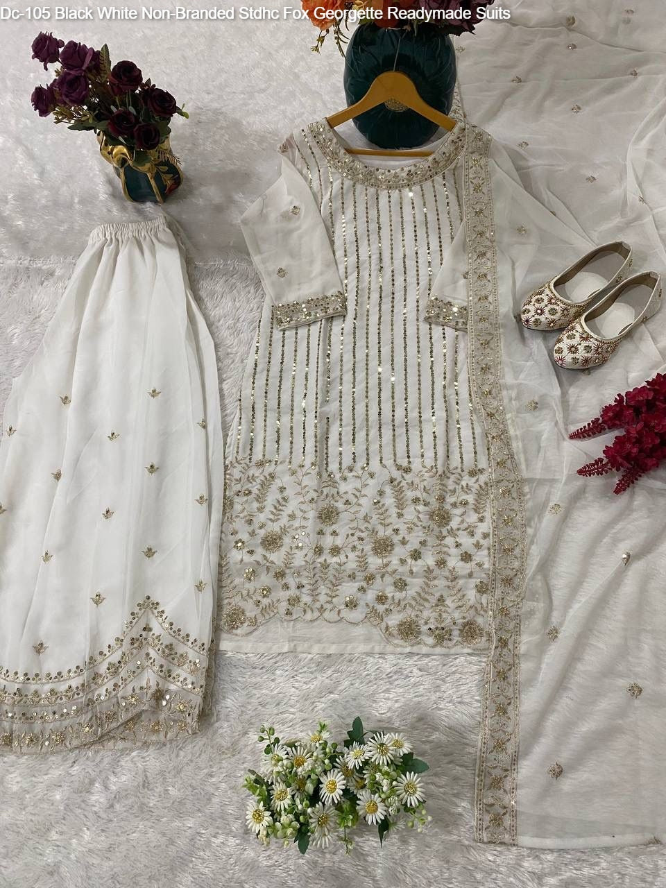 - Dc-105 Black White Non-Branded Stdhc Fox Georgette Readymade Suits Dealer Ahmedabad Surat Wholesale Gujarat India Lowest Price Best Quality Buy Purchase Shipping Kurta Salwaar Kameez Also free Cash on delivery