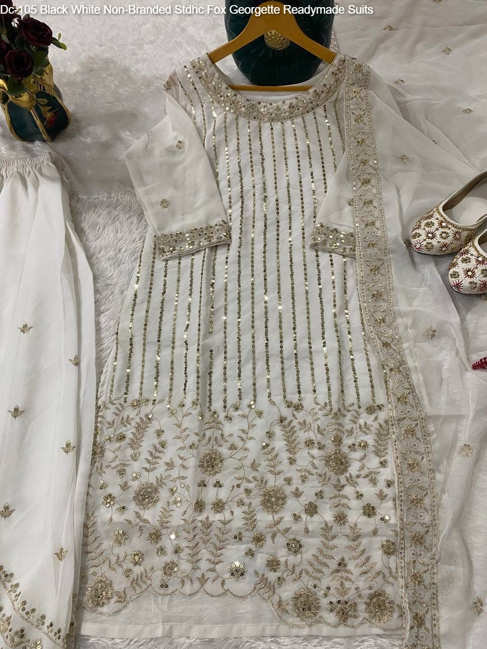Dc-105 Black White Non-Branded Stdhc Fox Georgette Readymade Suits