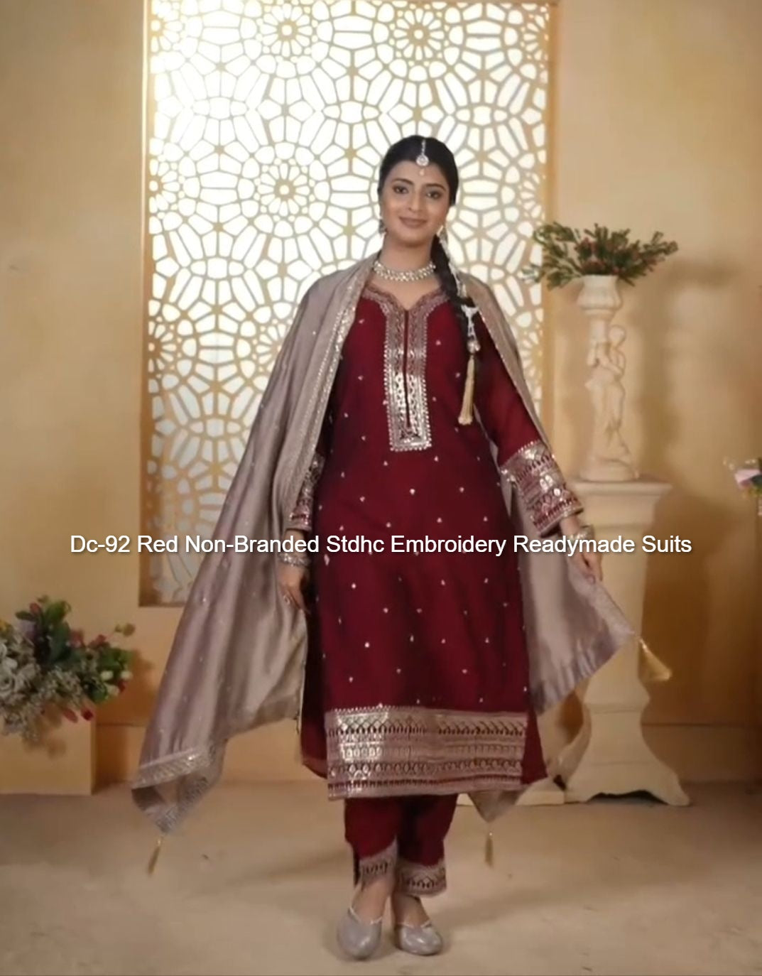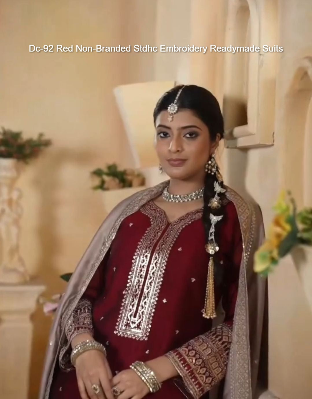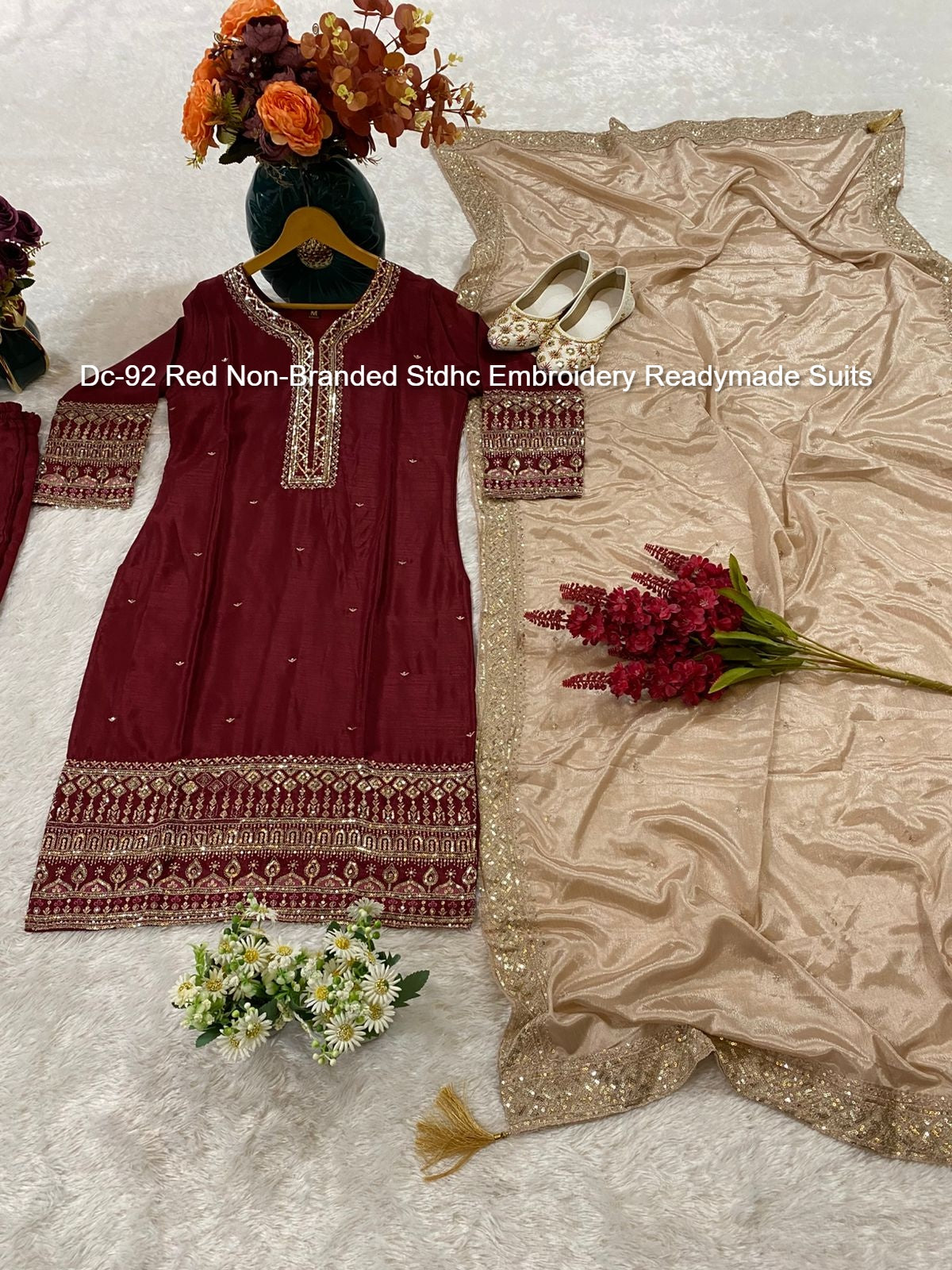 - Dc-92 Red Non-Branded Stdhc Embroidery Readymade Suits Dealer Ahmedabad Surat Wholesale Gujarat India Lowest Price Best Quality Buy Purchase Shipping Kurta Salwaar Kameez Also free Cash on delivery