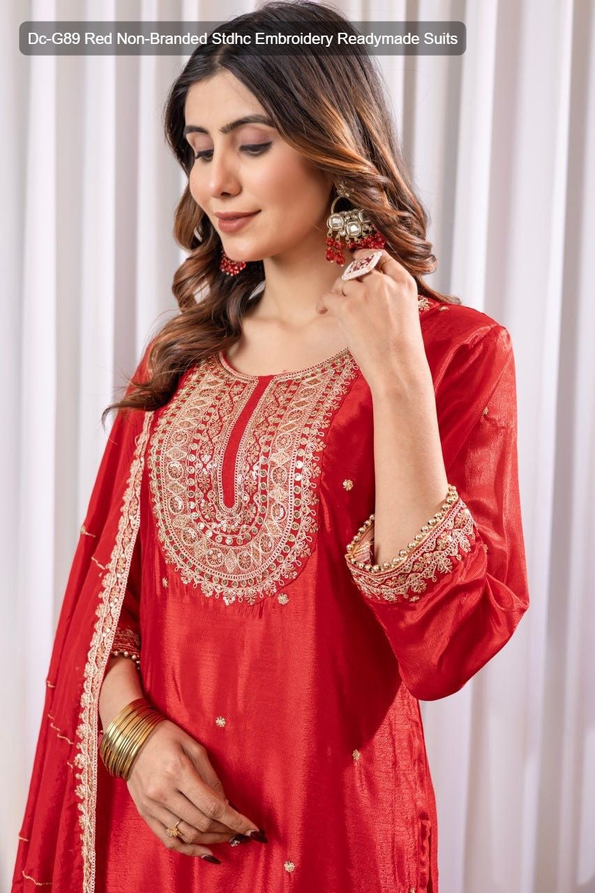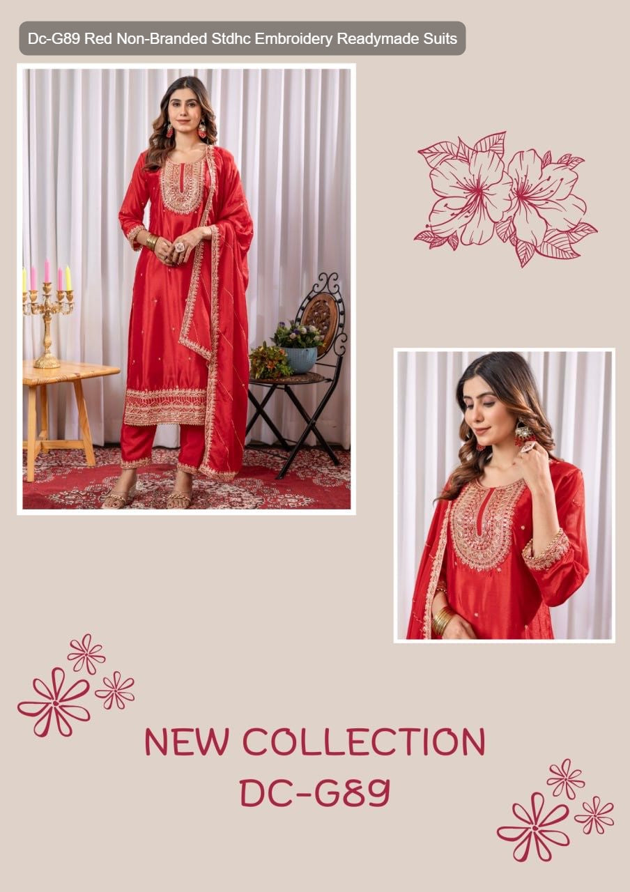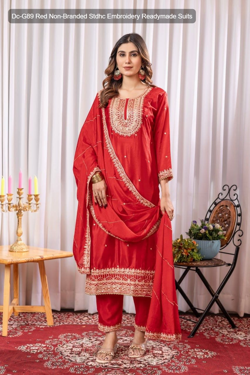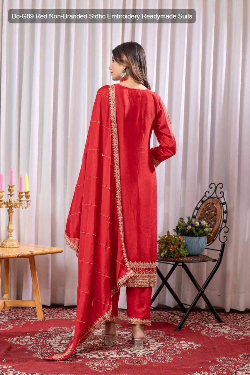 Dc-G89 Red Non-Branded Stdhc Embroidery Readymade Suits