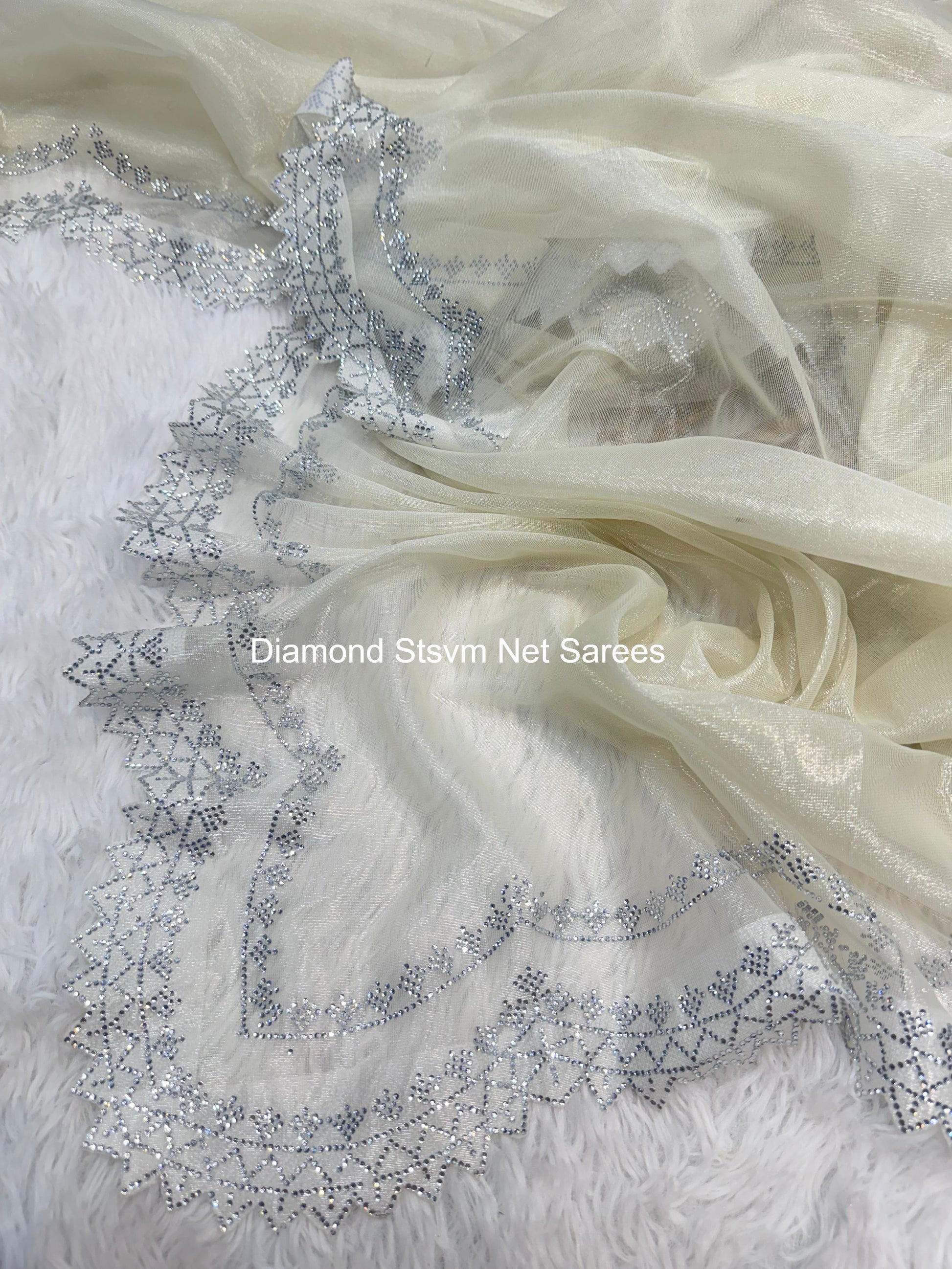 - Fabric Detail: Saree : Rich Tissue Tweel Net Special For Occation Diamond Cut Work Panel Work , Blouse : Rich Diamond Work , ,