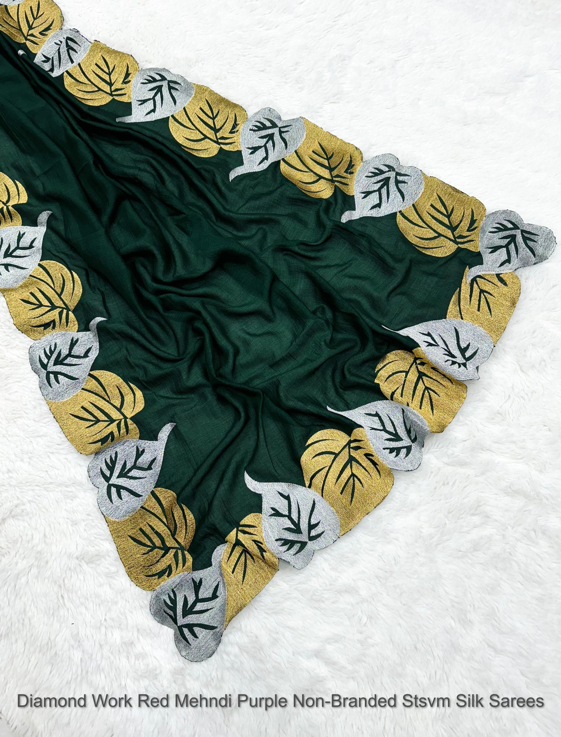 Diamond Work Red Mehndi Purple Non-Branded Stsvm Silk Sarees