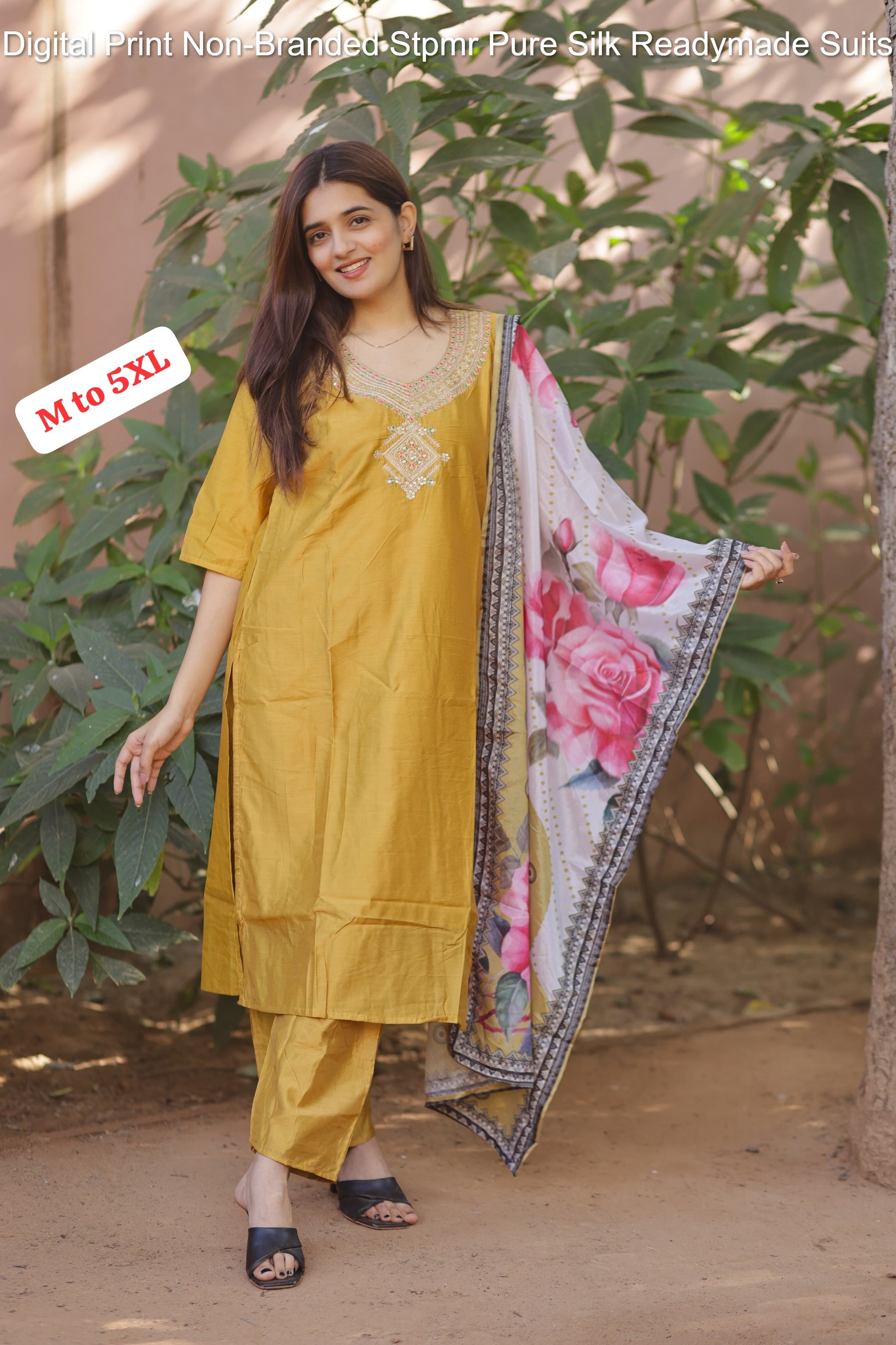 Digital Print Non-Branded Stpmr Pure Silk Readymade Suits