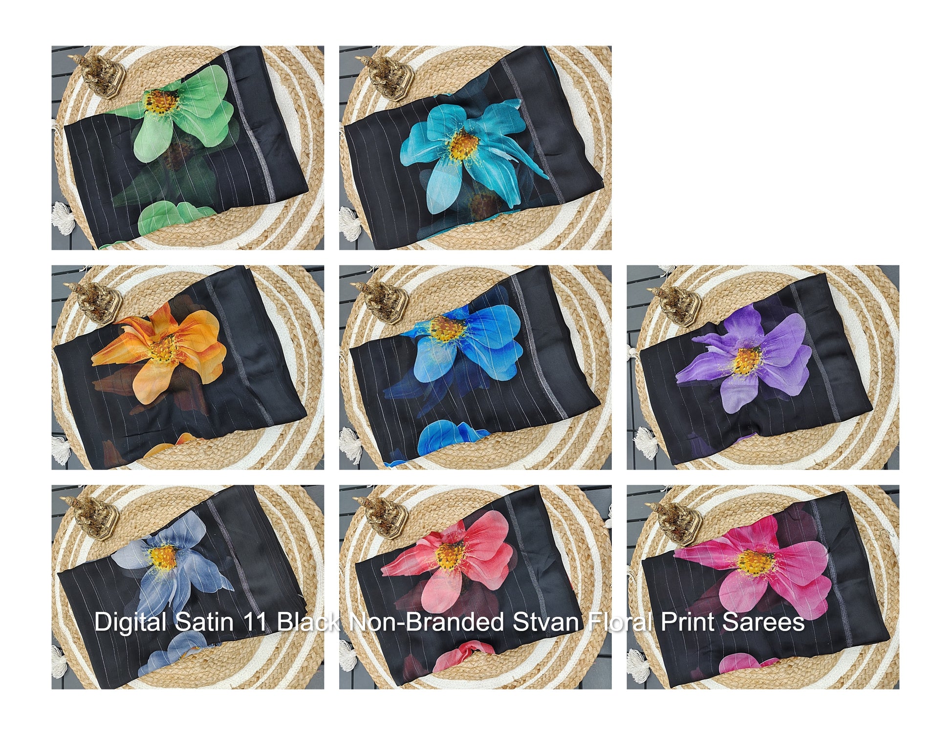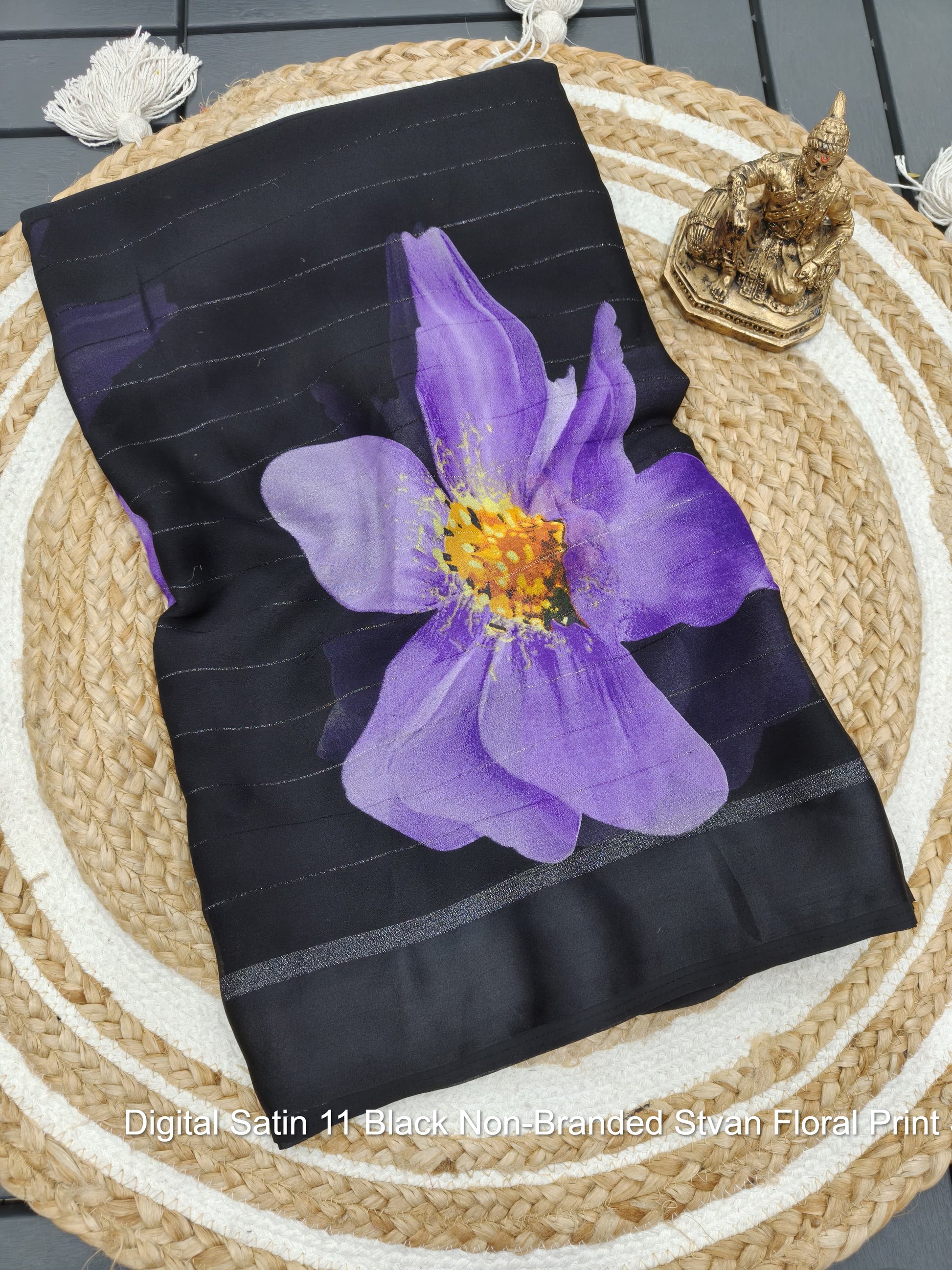 - Digital Satin 11 Black Non-Branded Stvan Floral Print Sarees Dealer Ahmedabad Surat Wholesale Gujarat India Lowest Price Best Quality Buy Purchase Shipping Kurta Salwaar Kameez Also free Cash on delivery