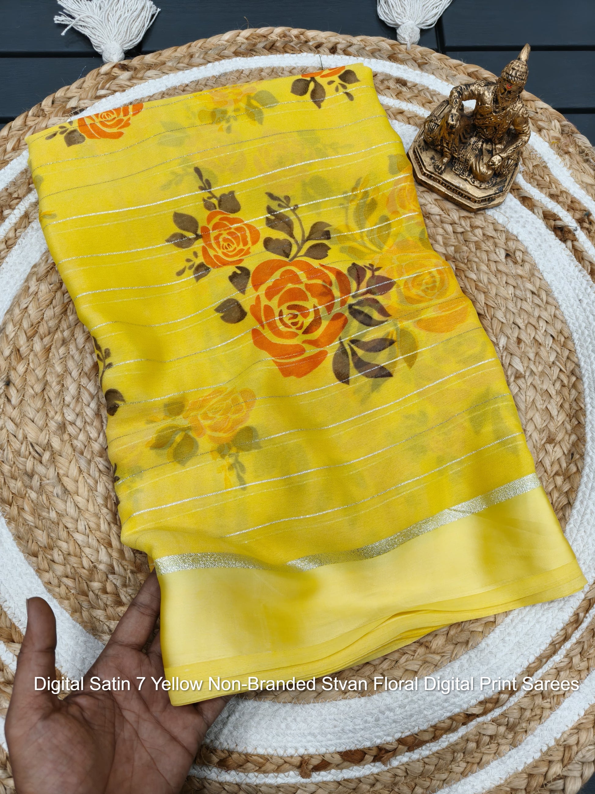 - Digital Satin 7 Yellow Non-Branded Stvan Floral Digital Print Sarees Dealer Ahmedabad Surat Wholesale Gujarat India Lowest Price Best Quality Buy Purchase Shipping Kurta Salwaar Kameez Also free Cash on delivery