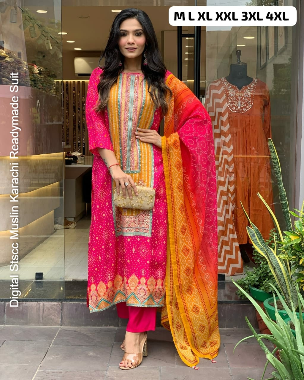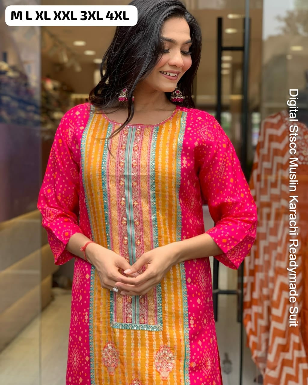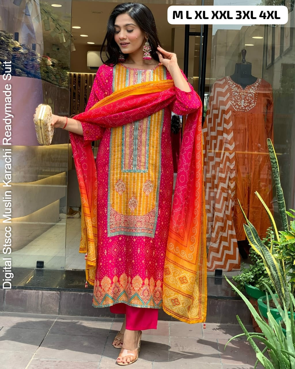 - Fabric Detail: Top : Pure Muslin Digital Print And Sequence Work Detailing Sound Like A Fashionable Choice For Upcoming Occasions, Bottom : Pure Muslin , Dupatta : Pure Muslin , Size : M, L, Xl, 2Xl, 3Xl,4Xl