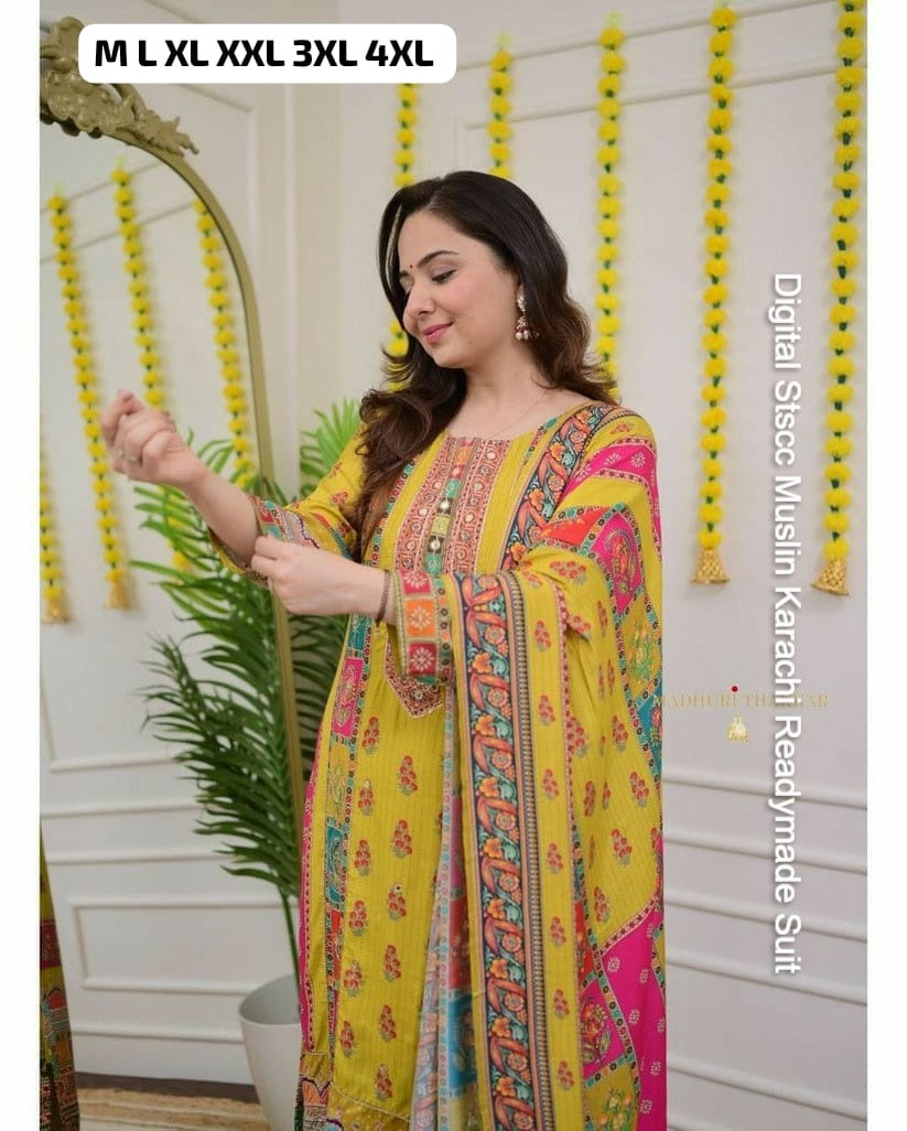 Digital Stscc Muslin Karachi Readymade Suit