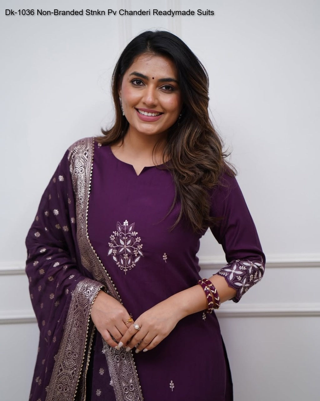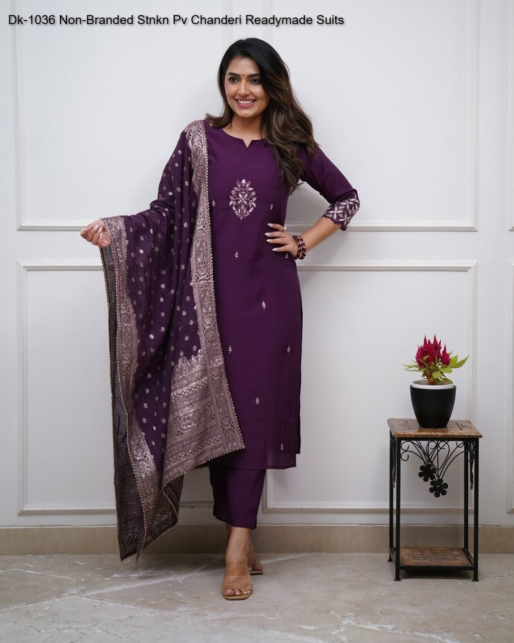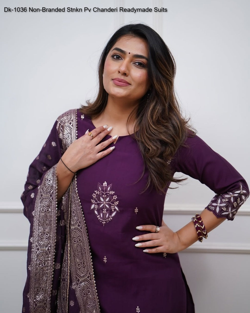 Dk-1036 Non-Branded Stnkn Pv Chanderi Readymade Suits