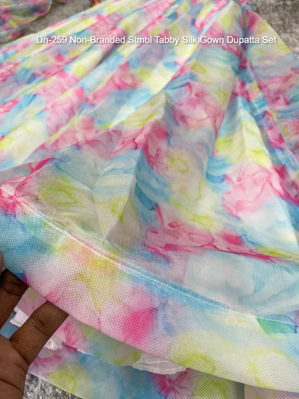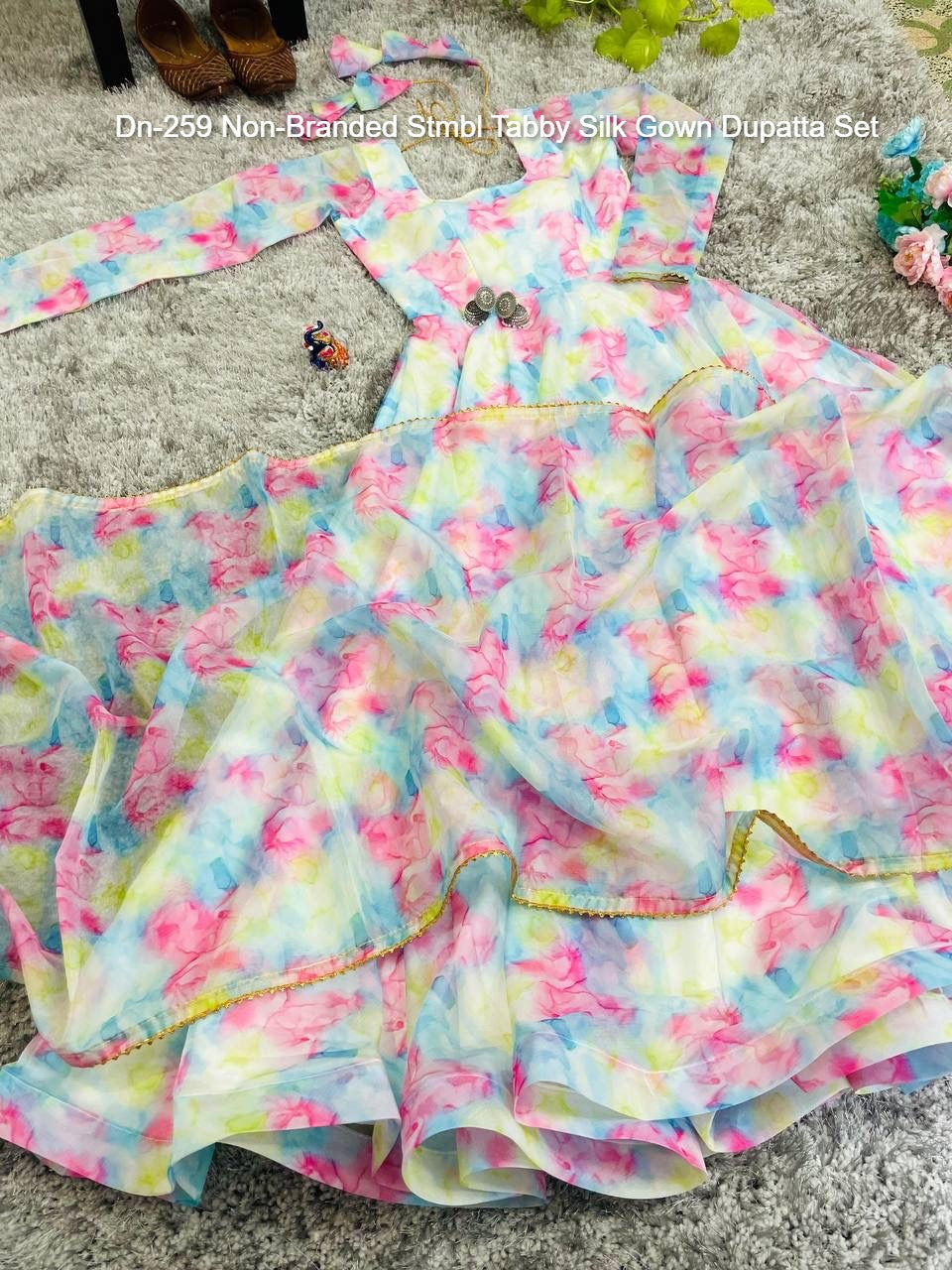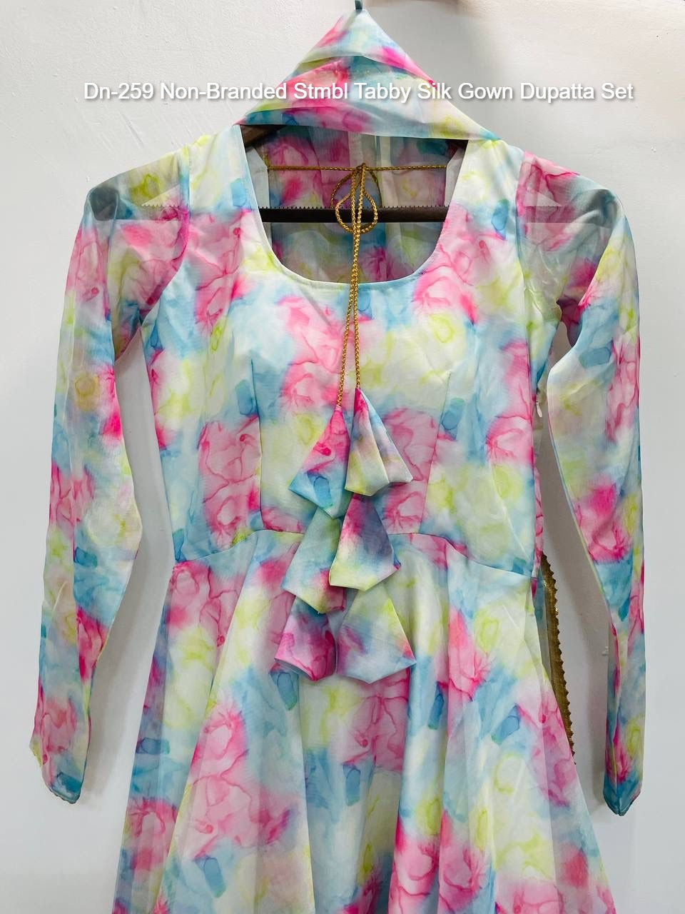 Dn-259 Non-Branded Stmbl Tabby Silk Gown Dupatta Set