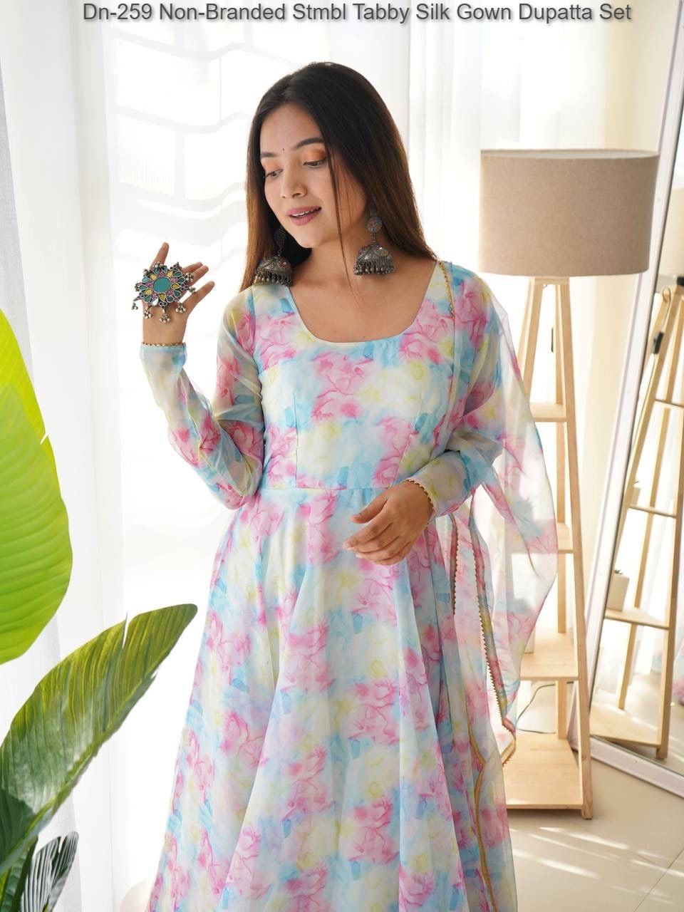 - Dn-259 Non-Branded Stmbl Tabby Silk Gown Dupatta Set Dealer Ahmedabad Surat Wholesale Gujarat India Lowest Price Best Quality Buy Purchase Shipping Kurta Salwaar Kameez Also free Cash on delivery