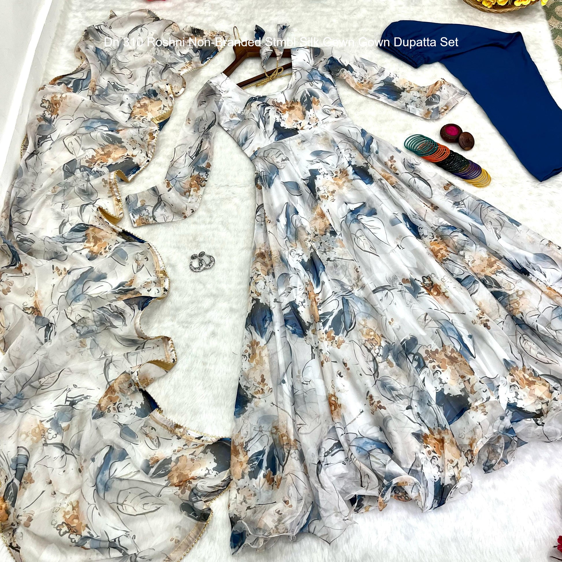 Dn 310 Roshni Non-Branded Stmbl Silk Gown Gown Dupatta Set