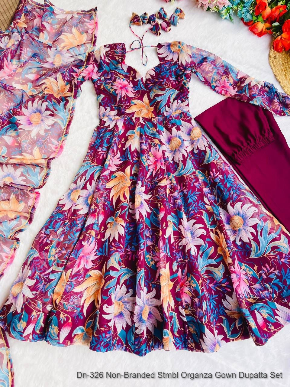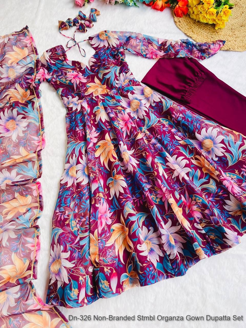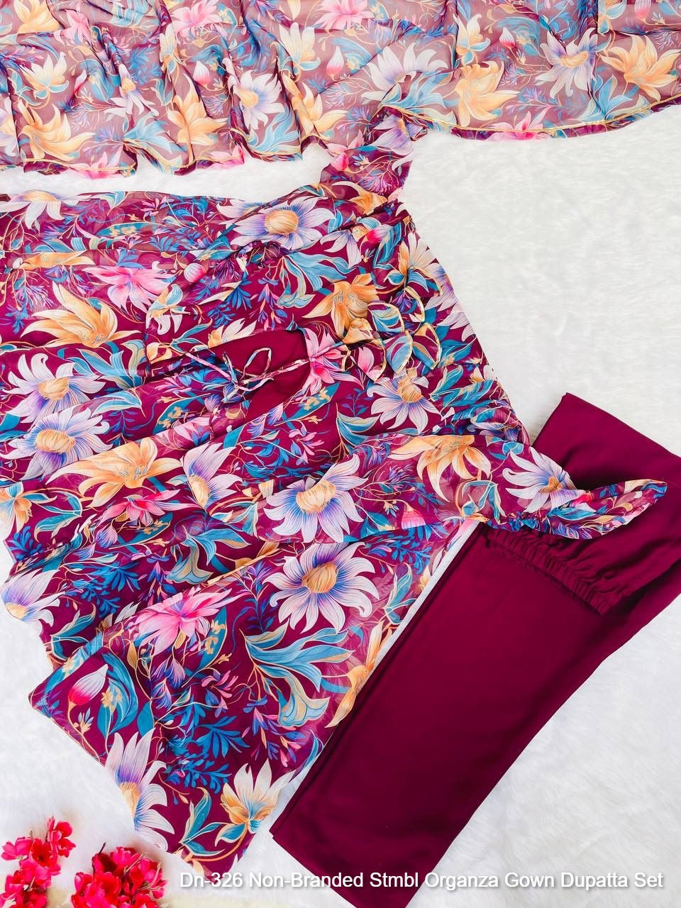 Dn-326 Non-Branded Stmbl Organza Gown Dupatta Set