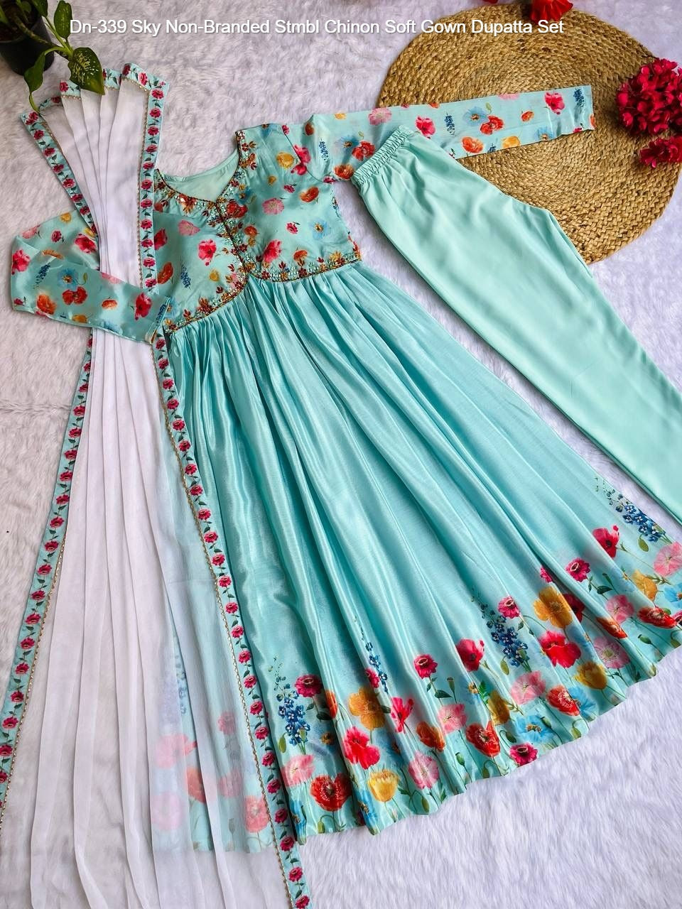 - Dn-339 Sky Non-Branded Stmbl Chinon Soft Readymade Suits Dealer Ahmedabad Surat Wholesale Gujarat India Lowest Price Best Quality Buy Purchase Shipping Kurta Salwaar Kameez Also free Cash on delivery