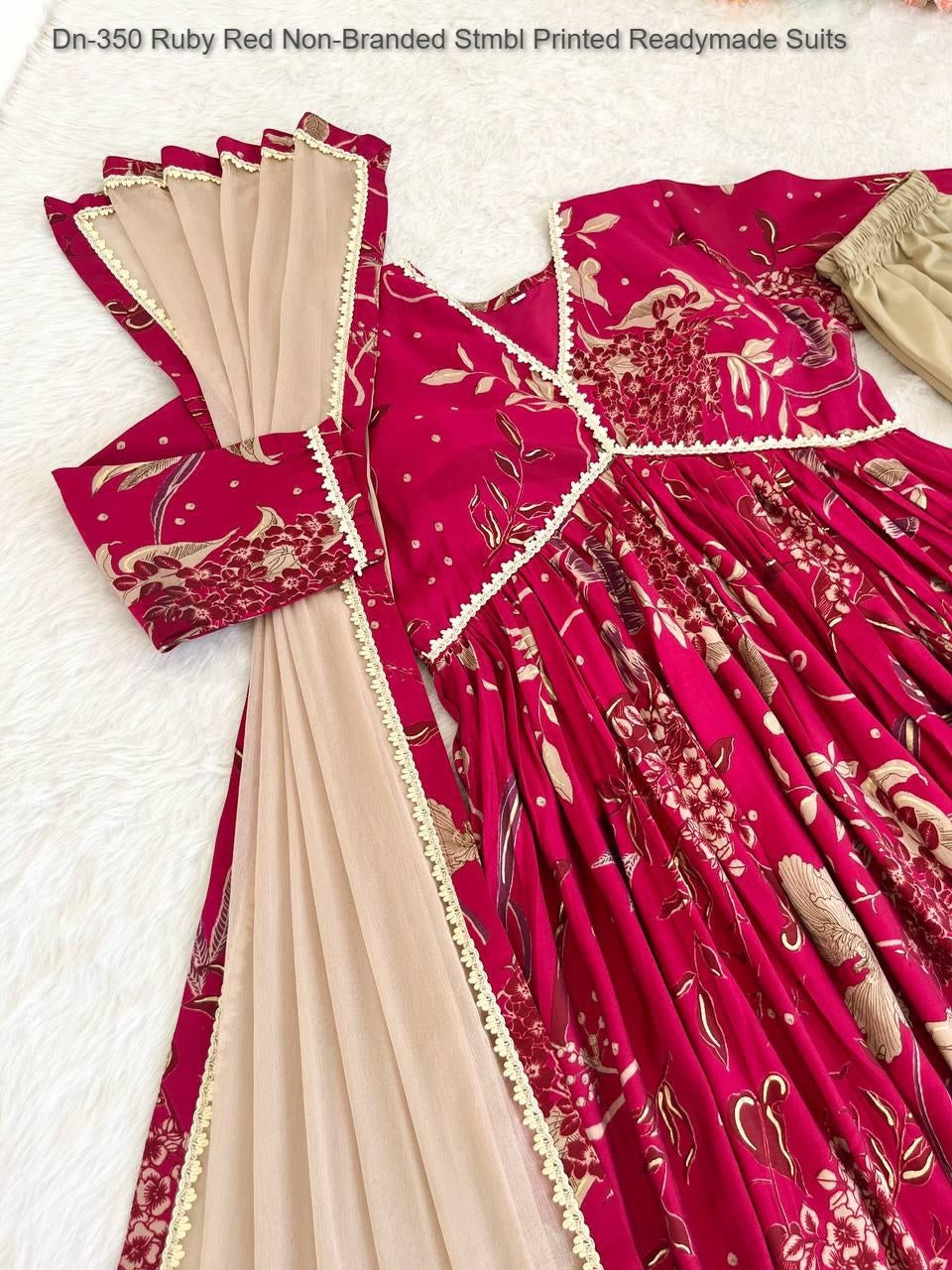 - Dn-350 Ruby Red Non-Branded Stmbl Printed Readymade Suits Dealer Ahmedabad Surat Wholesale Gujarat India Lowest Price Best Quality Buy Purchase Shipping Kurta Salwaar Kameez Also free Cash on delivery