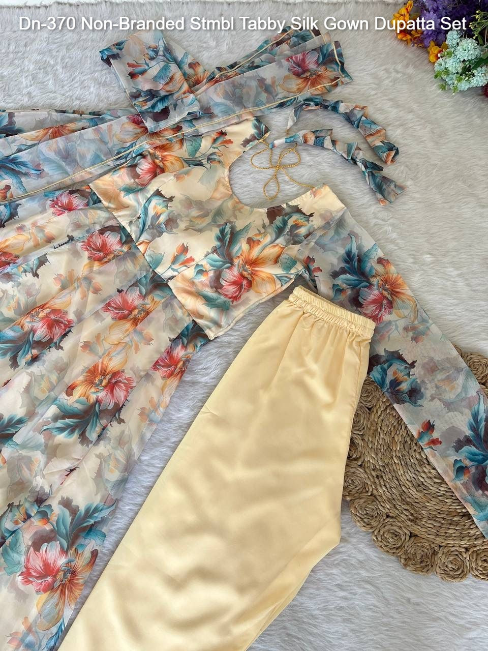 Dn-370 Non-Branded Stmbl Tabby Silk Gown Dupatta Set