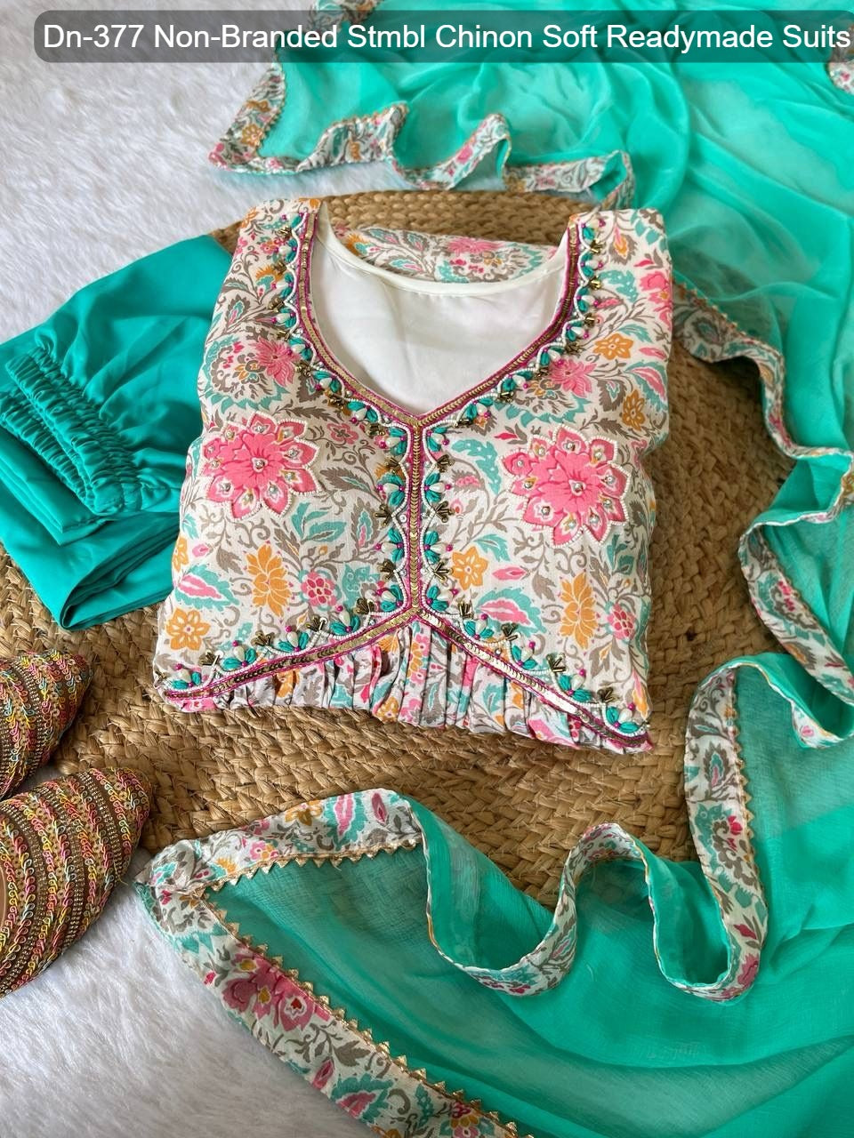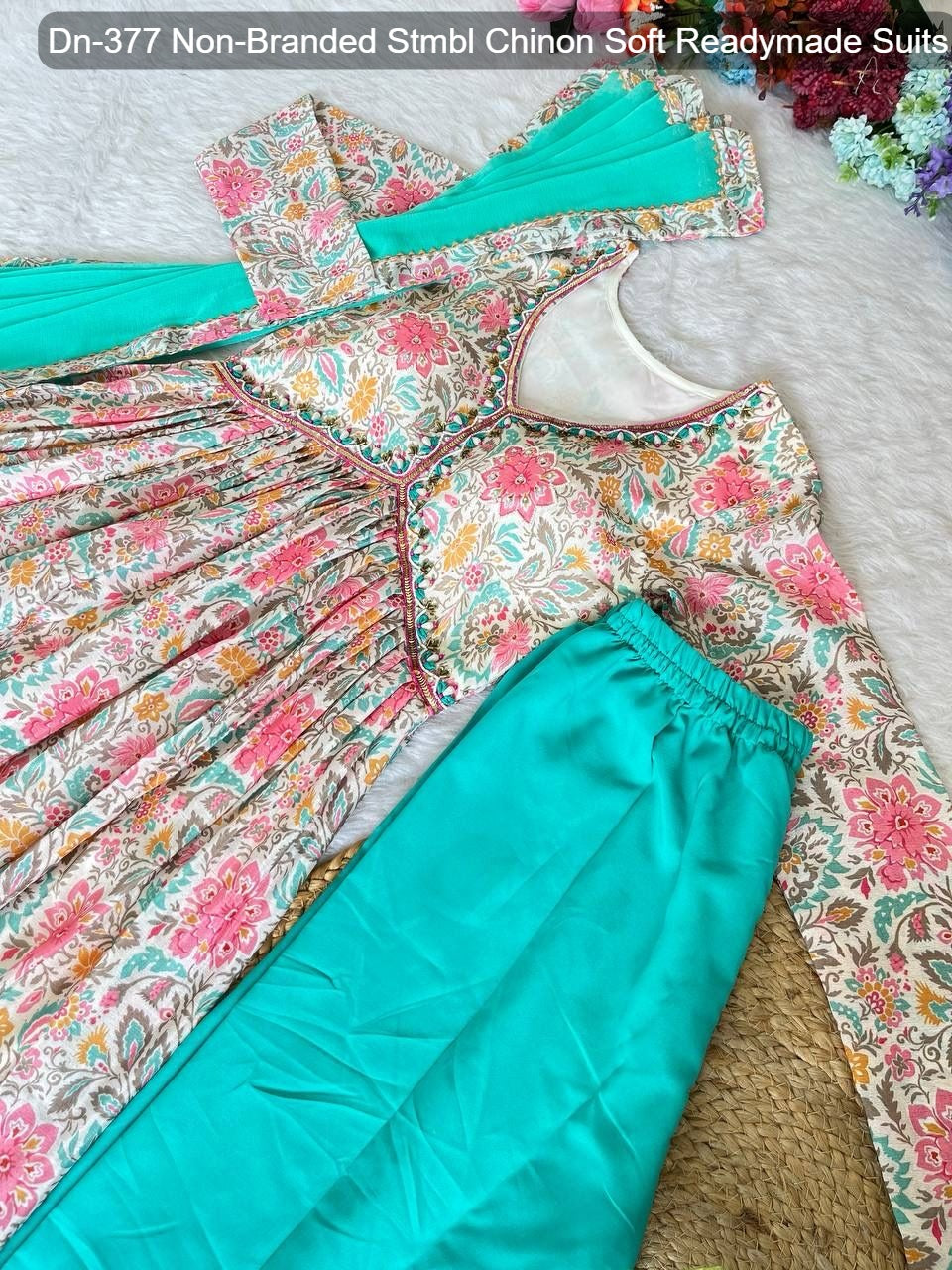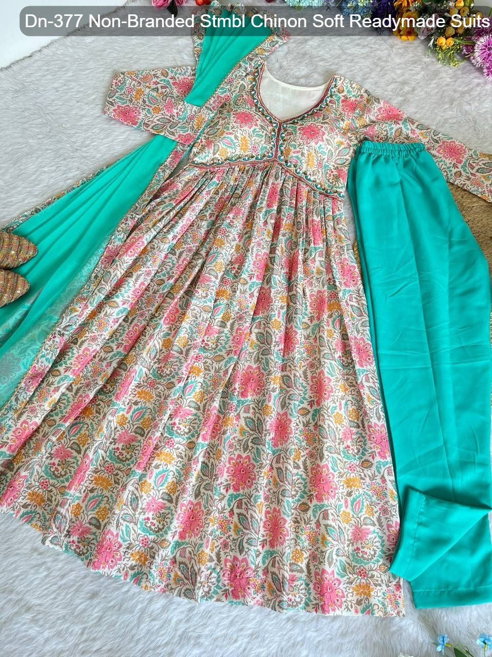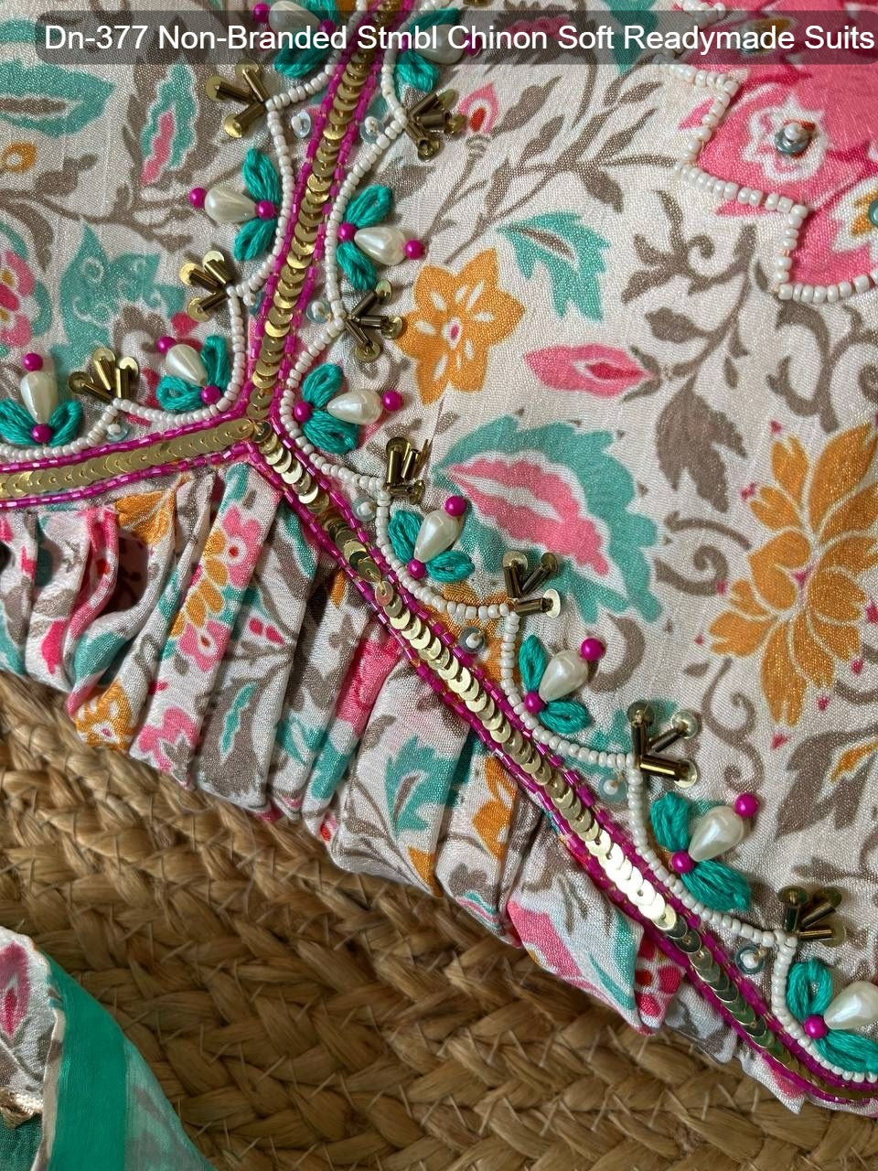 - Dn-377 Non-Branded Stmbl Chinon Soft Readymade Suits Dealer Ahmedabad Surat Wholesale Gujarat India Lowest Price Best Quality Buy Purchase Shipping Kurta Salwaar Kameez Also free Cash on delivery