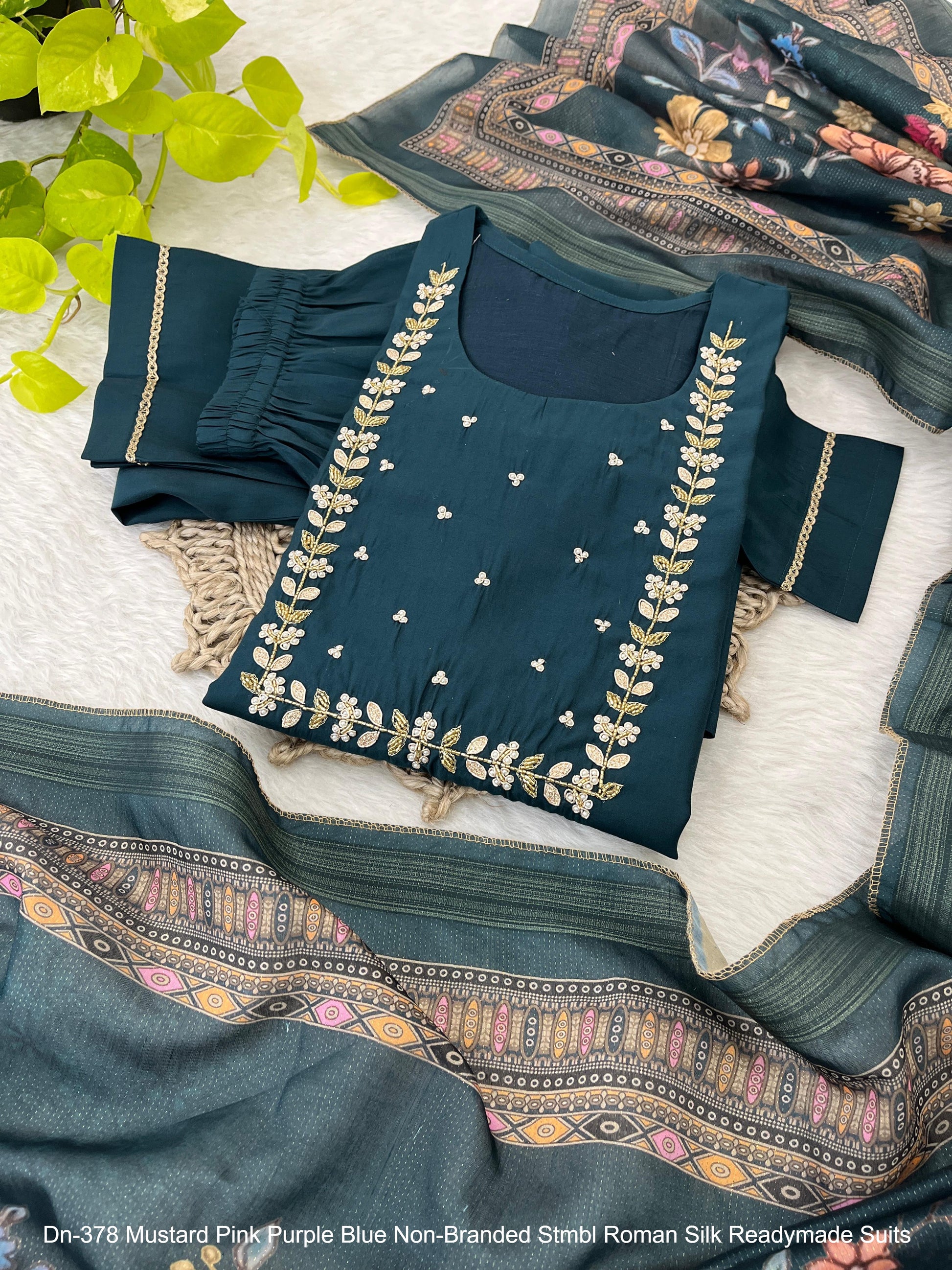 Dn-378 Mustard Pink Purple Blue Non-Branded Stmbl Roman Silk Readymade Suits