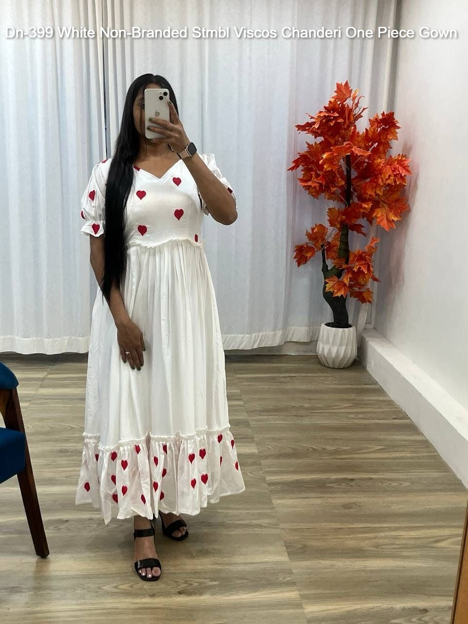 Dn-399 White Non-Branded Stmbl Viscos Chanderi One Piece Gown
