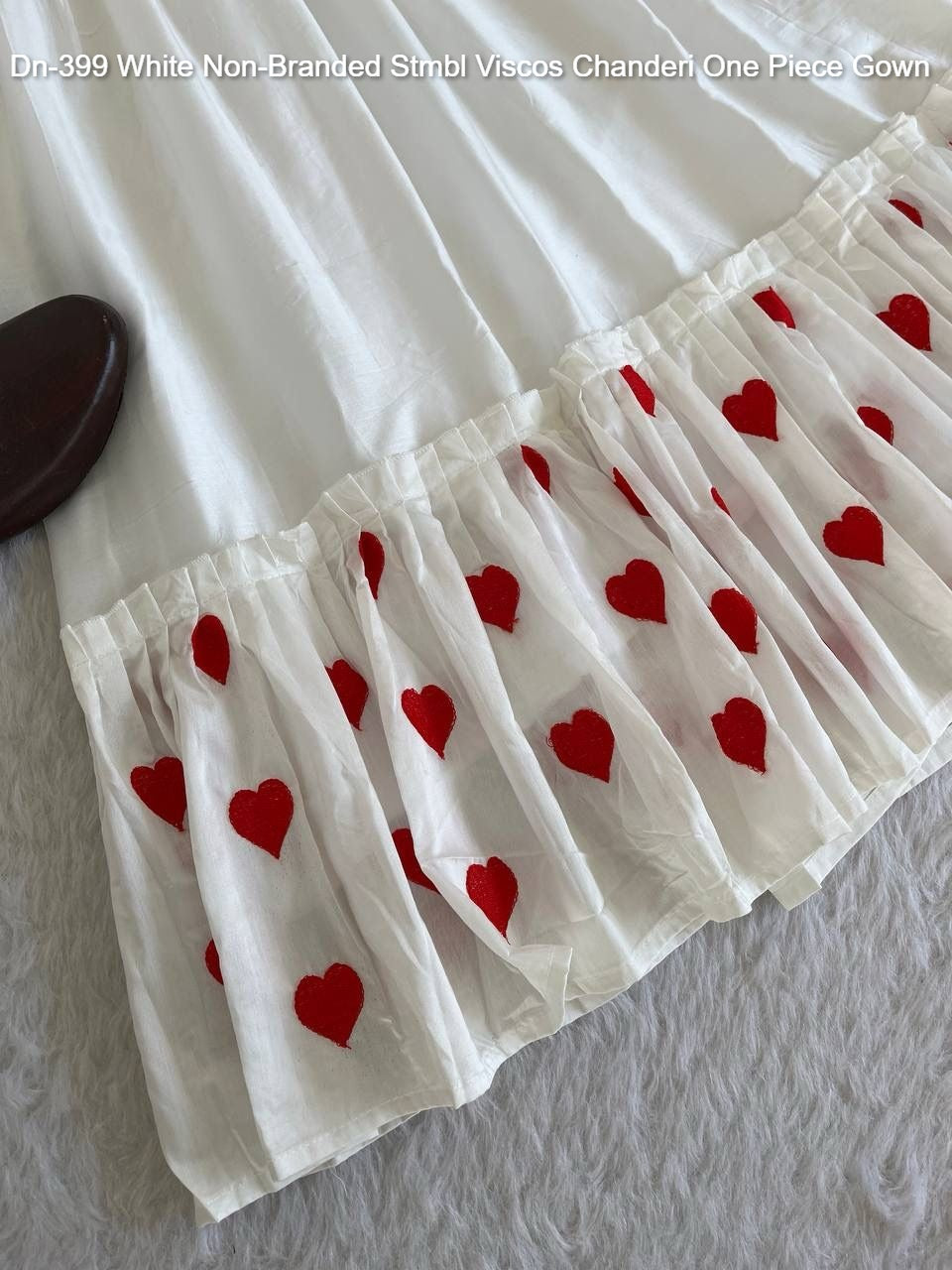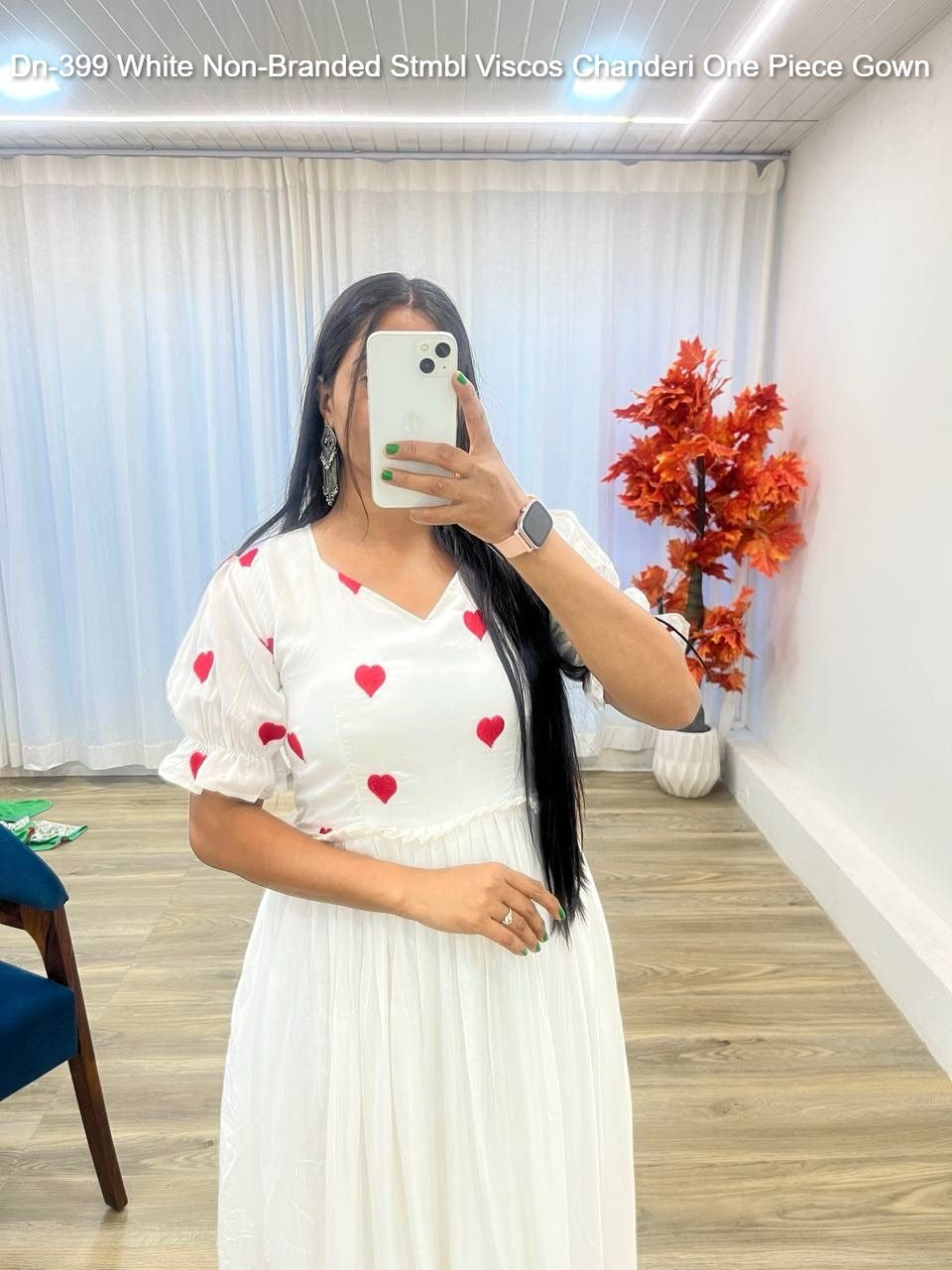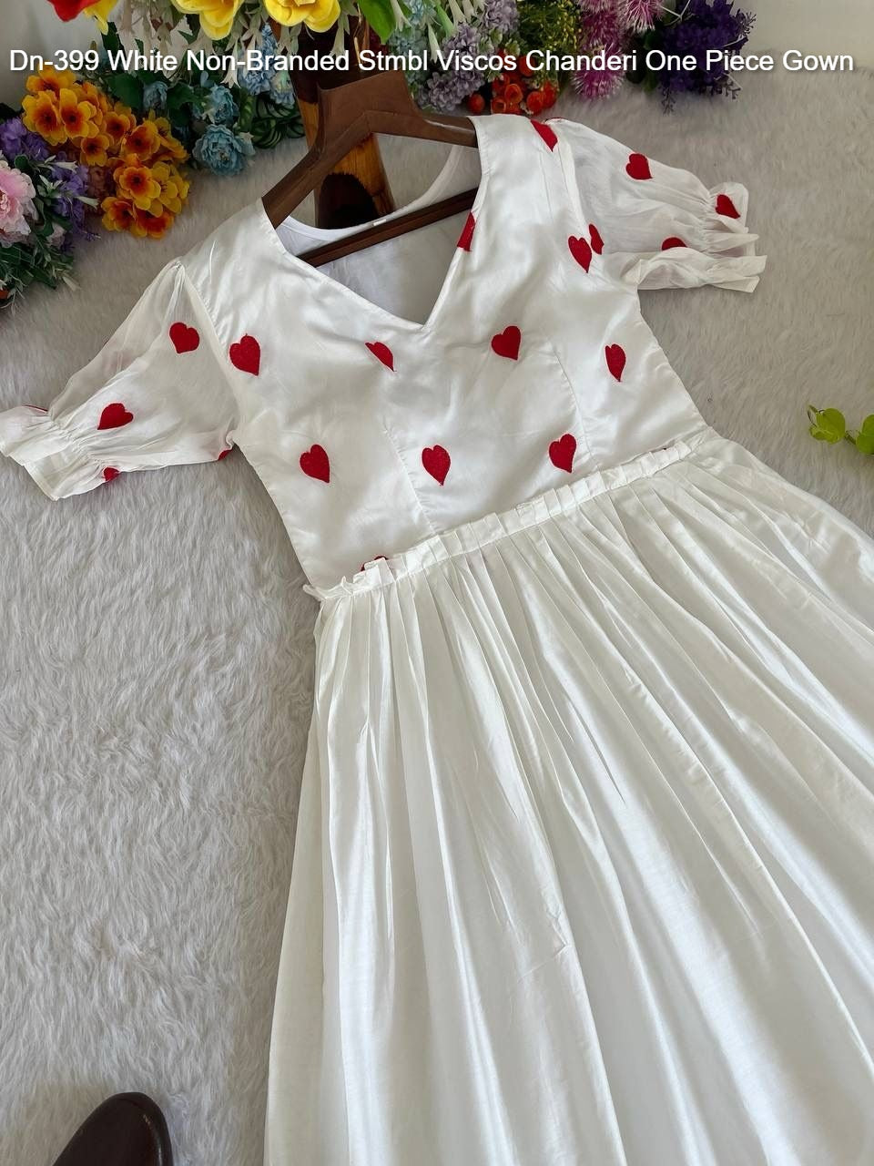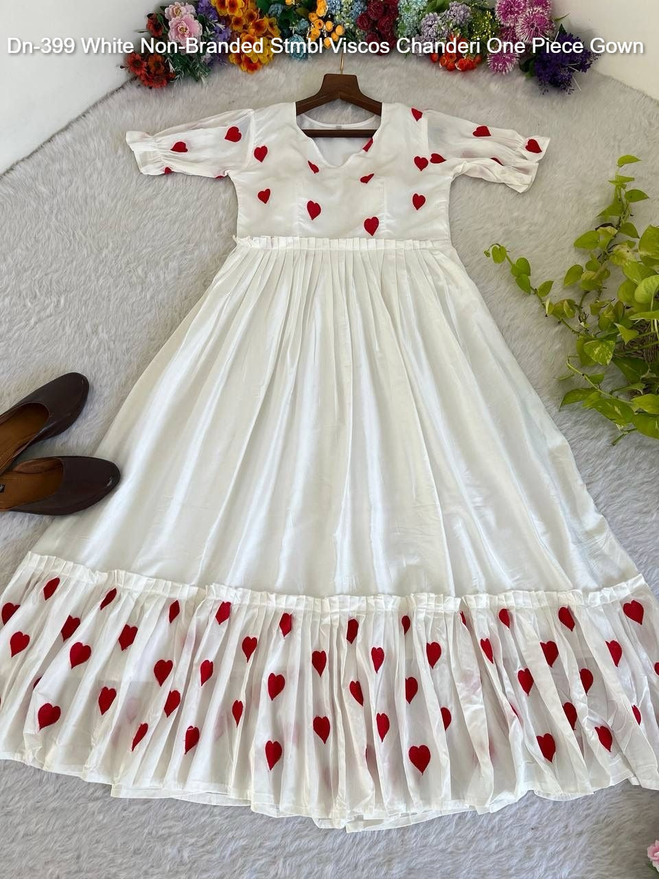 - Dn-399 White Non-Branded Stmbl Viscos Chanderi One Piece Gown Dealer Ahmedabad Surat Wholesale Gujarat India Lowest Price Best Quality Buy Purchase Shipping Kurta Salwaar Kameez Also free Cash on delivery