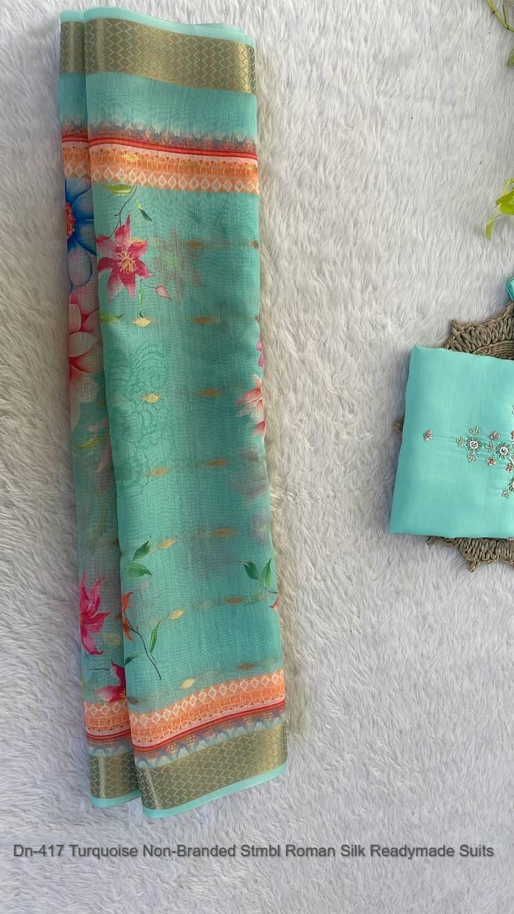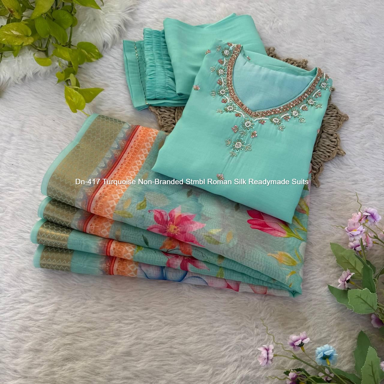 Dn-417 Turquoise Non-Branded Stmbl Roman Silk Readymade Suits