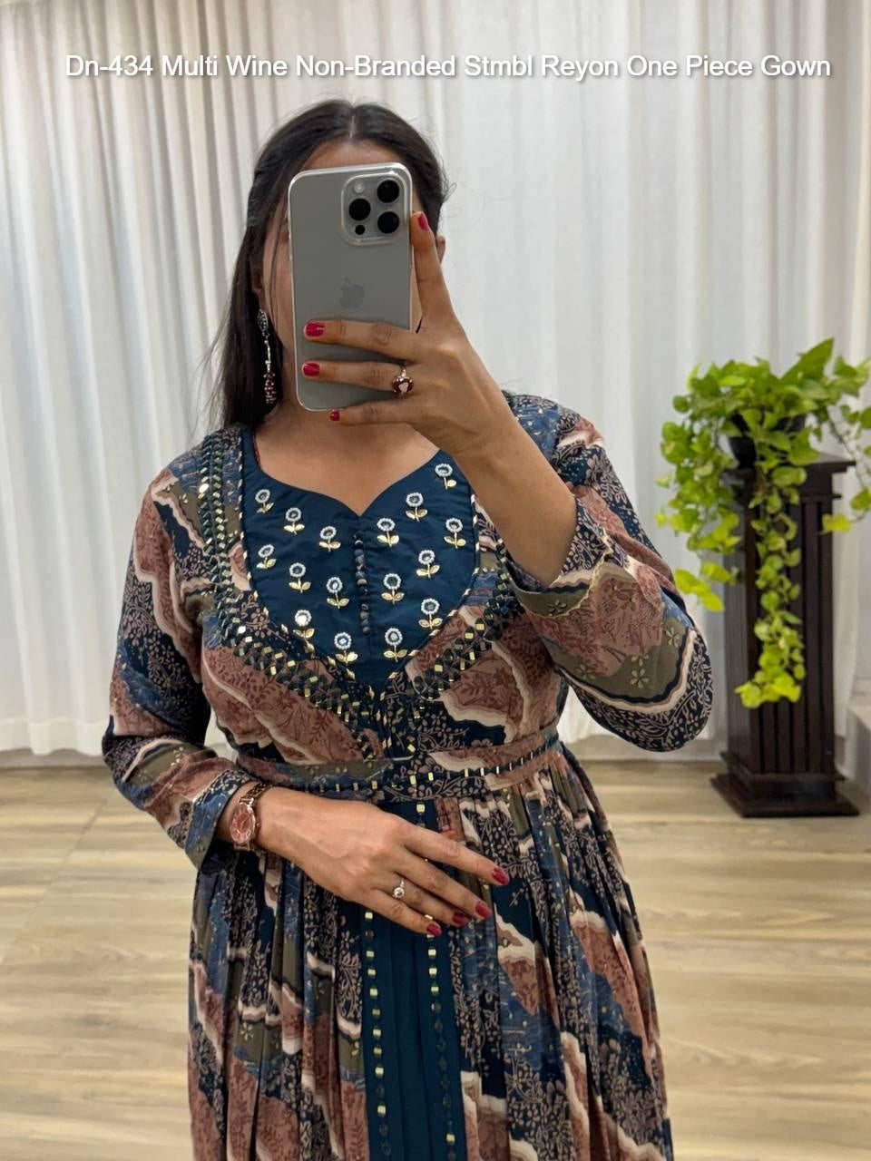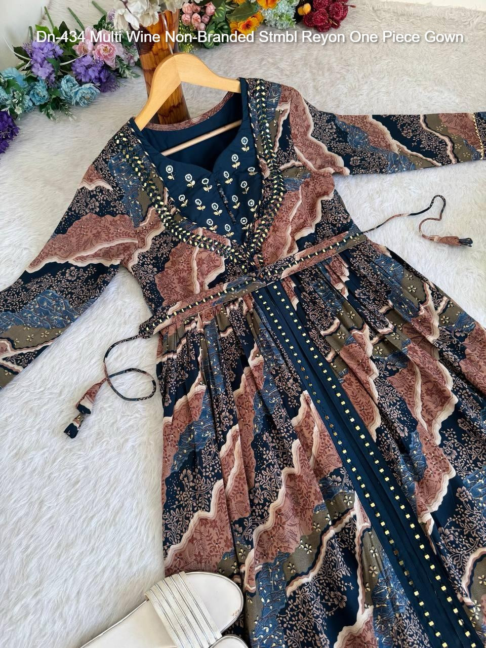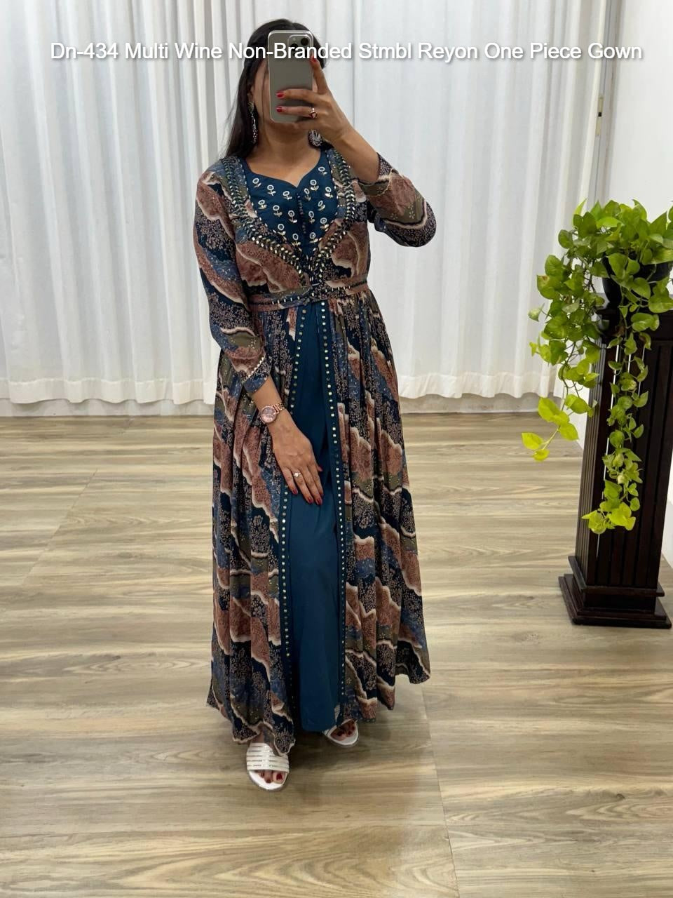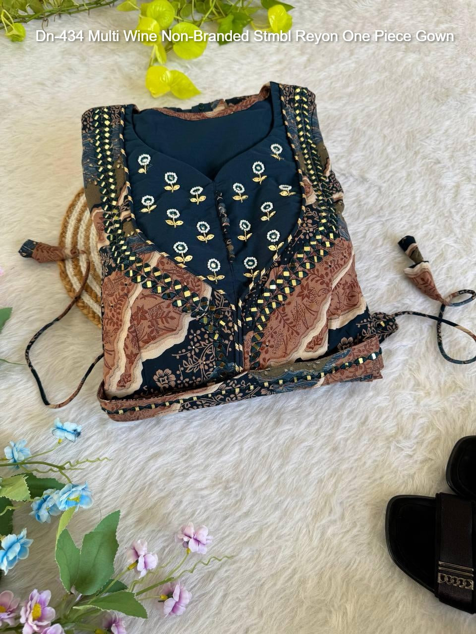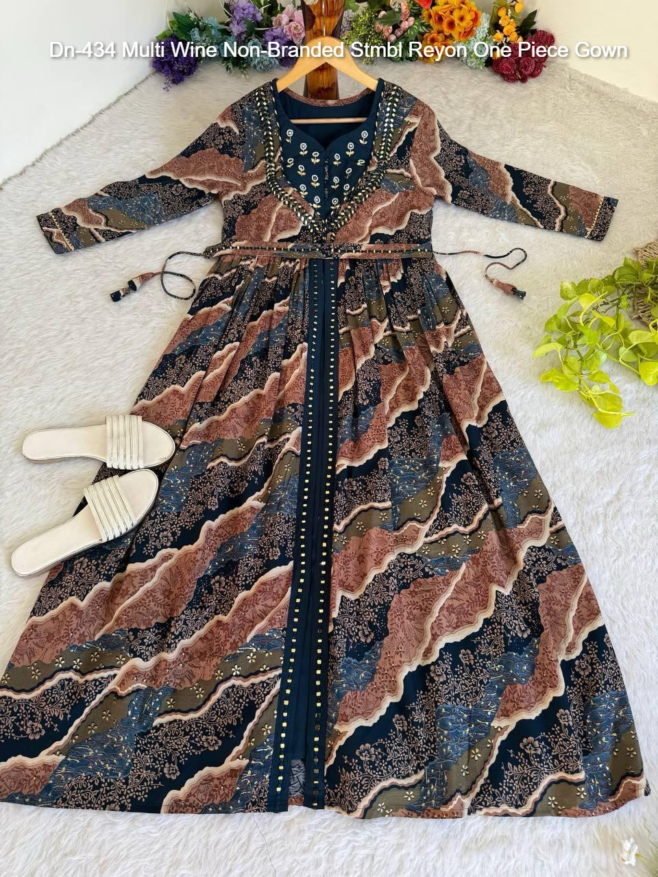 - Dn-434 Multi Wine Non-Branded Stmbl Reyon One Piece Gown Dealer Ahmedabad Surat Wholesale Gujarat India Lowest Price Best Quality Buy Purchase Shipping Kurta Salwaar Kameez Also free Cash on delivery