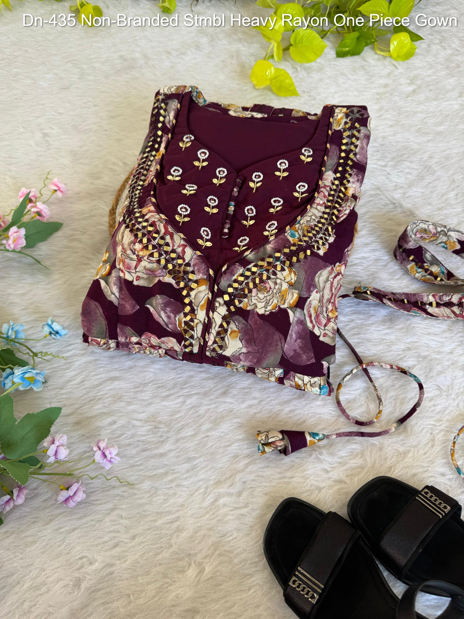 - Dn-435 Non-Branded Stmbl Heavy Rayon One Piece Gown Dealer Ahmedabad Surat Wholesale Gujarat India Lowest Price Best Quality Buy Purchase Shipping Kurta Salwaar Kameez Also free Cash on delivery