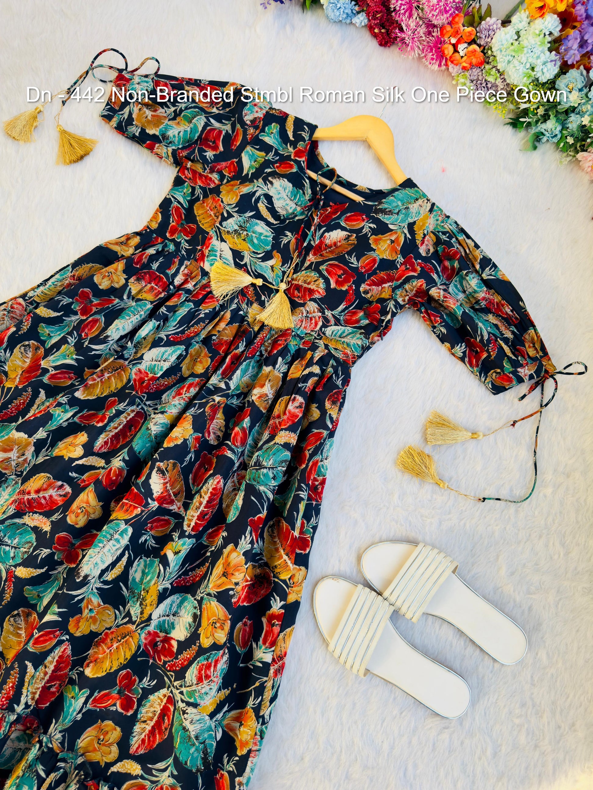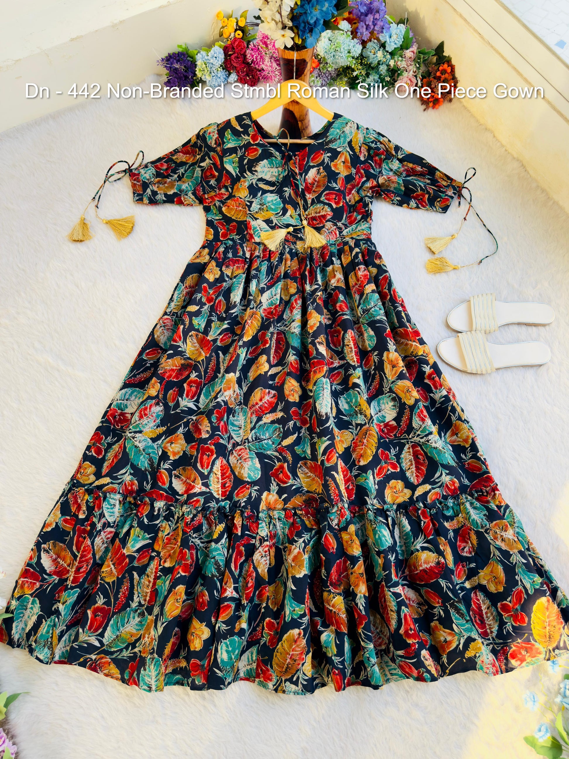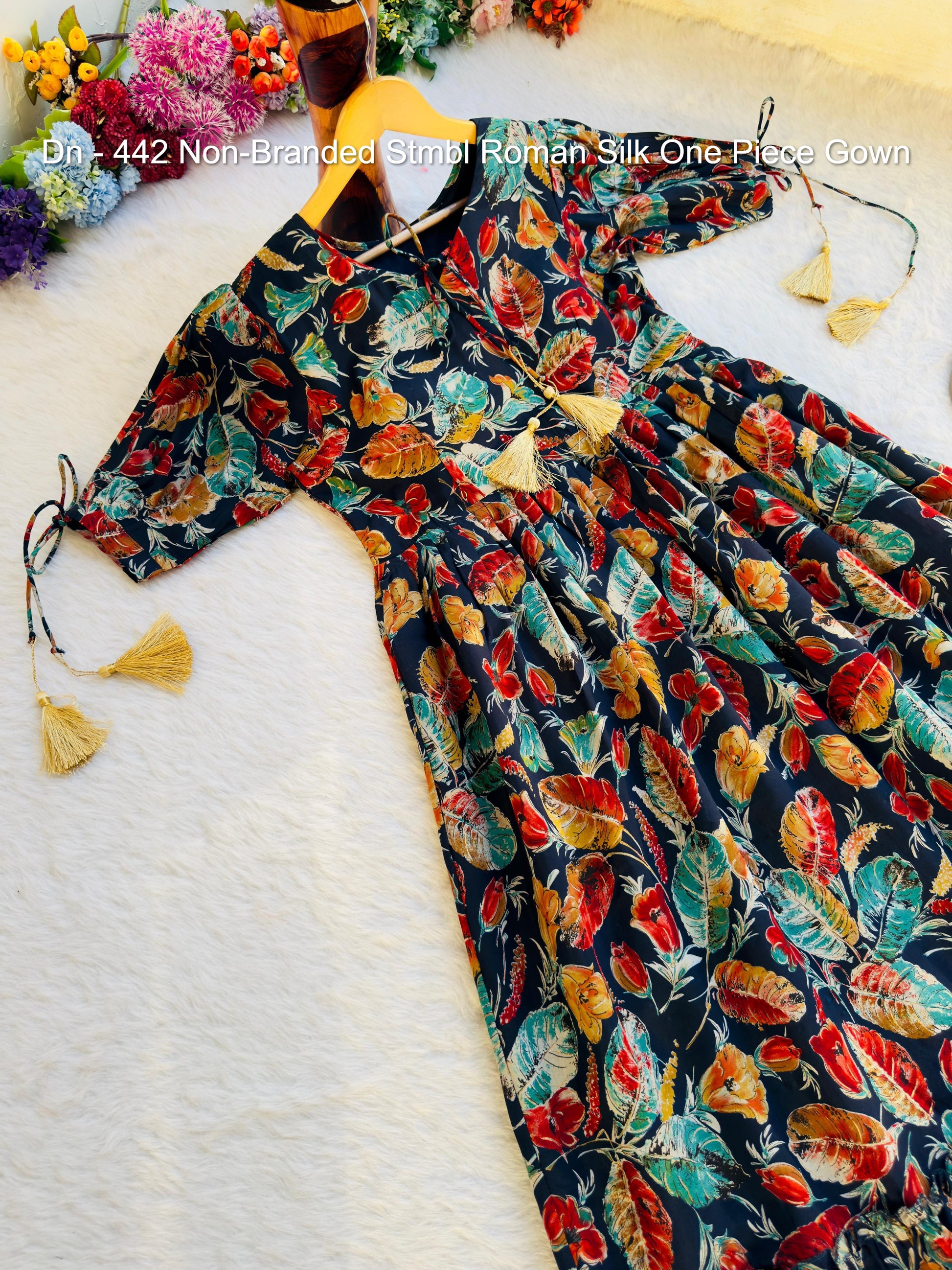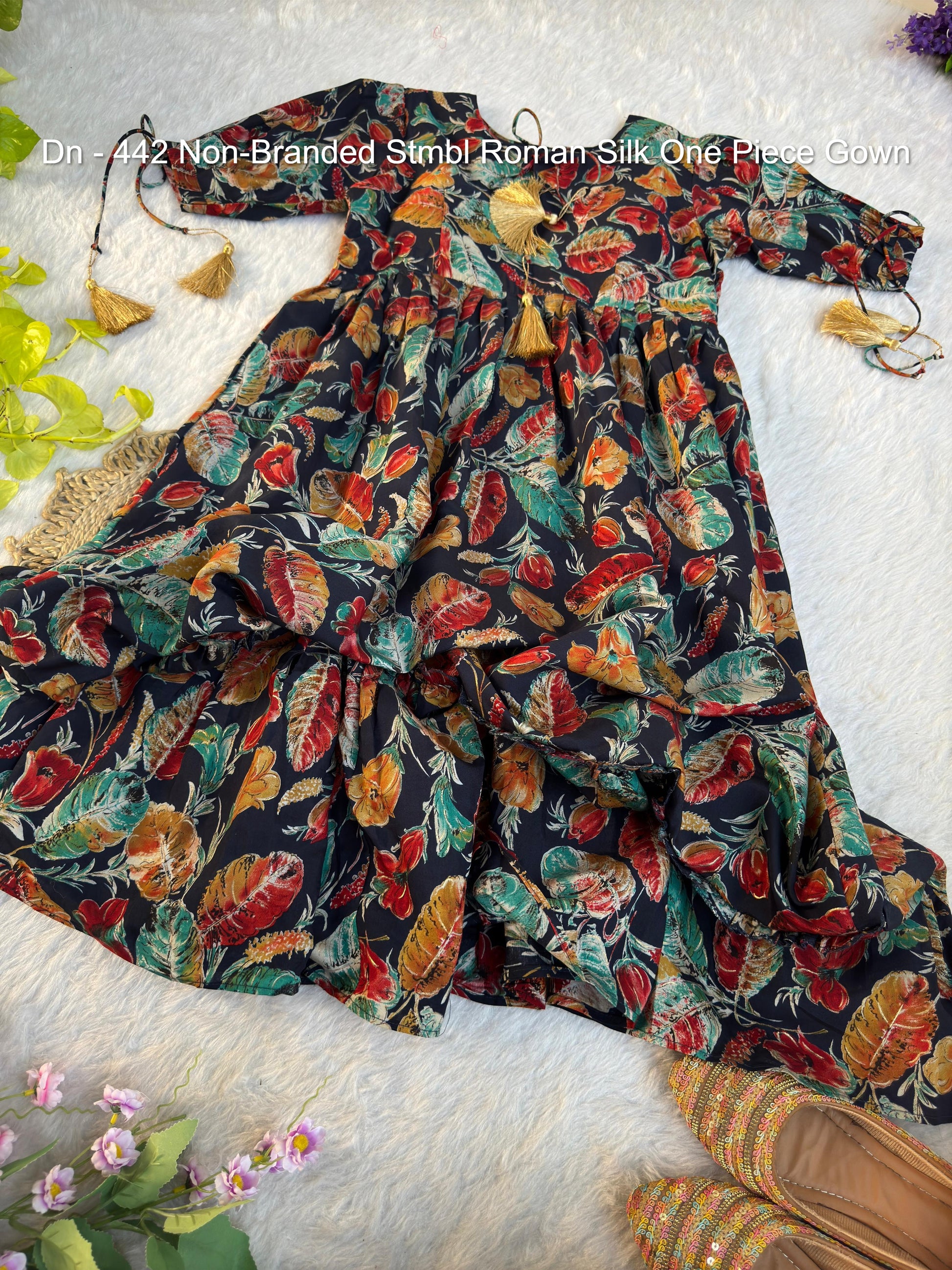 - Dn - 442 Non-Branded Stmbl Roman Silk One Piece Gown Dealer Ahmedabad Surat Wholesale Gujarat India Lowest Price Best Quality Buy Purchase Shipping Kurta Salwaar Kameez Also free Cash on delivery