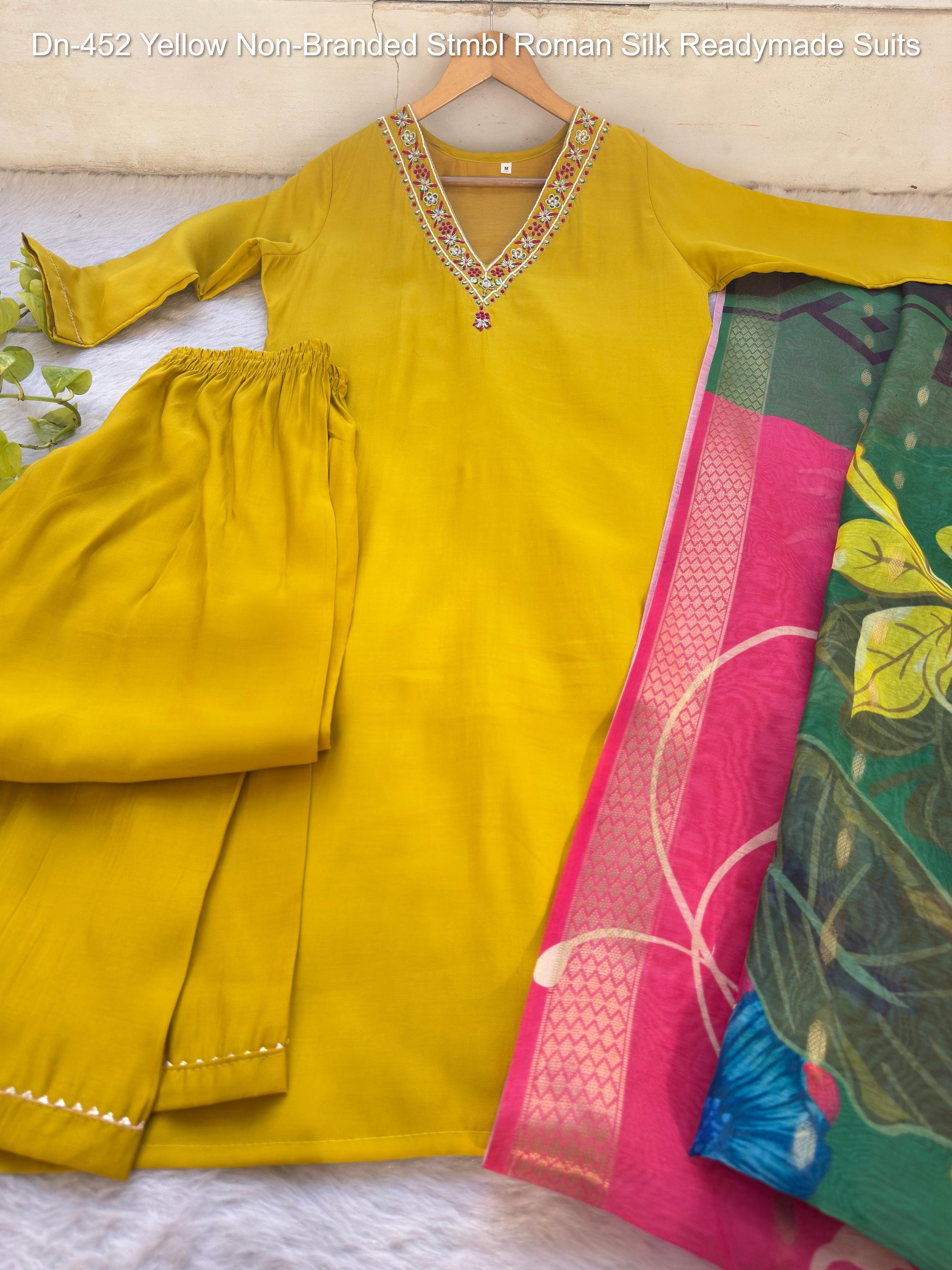 Dn-452 Yellow Non-Branded Stmbl Roman Silk Readymade Suits