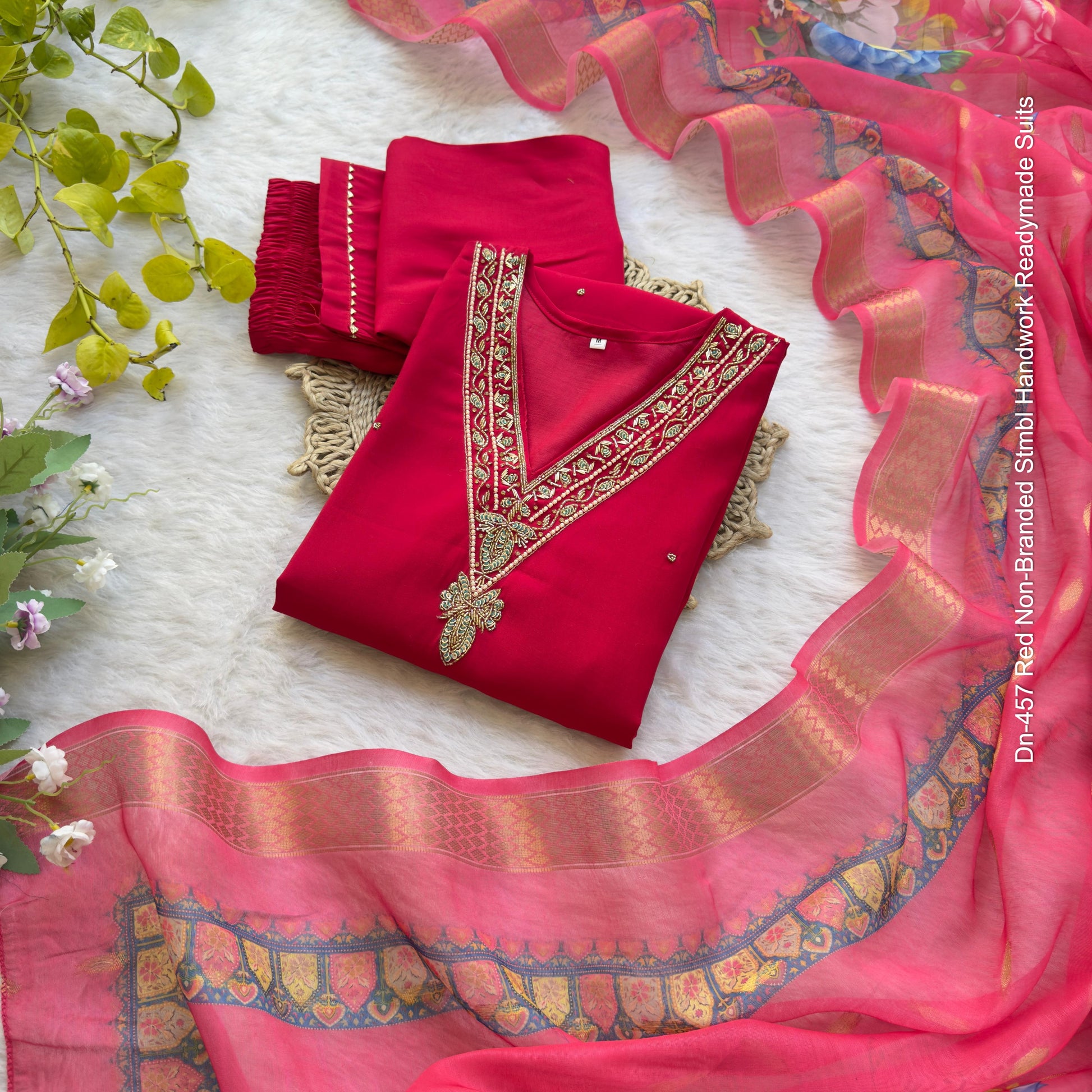 Dn-457 Red Non-Branded Stmbl Handwork Readymade Suits