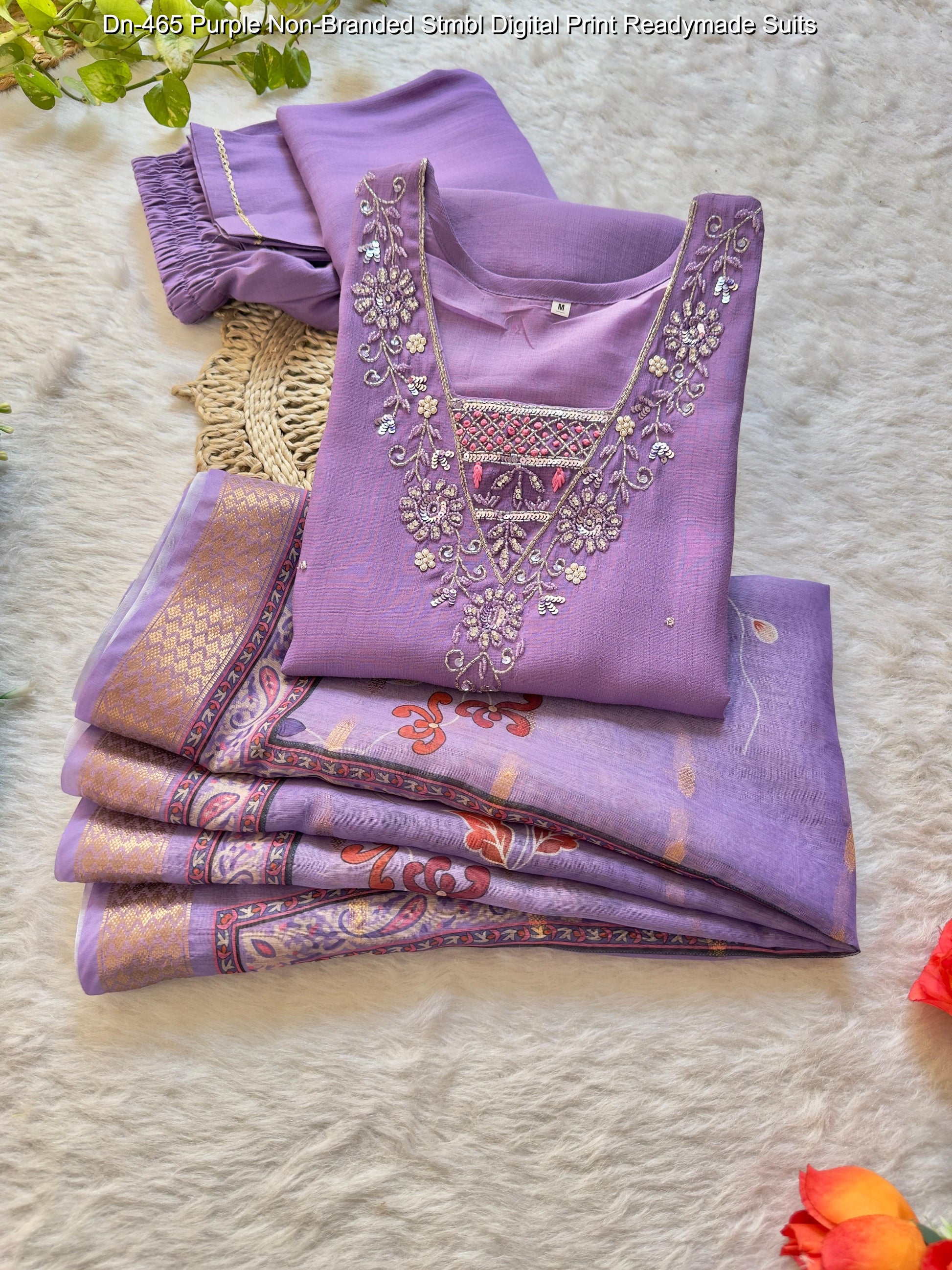 Dn-465 Purple Non-Branded Stmbl Digital Print Readymade Suits