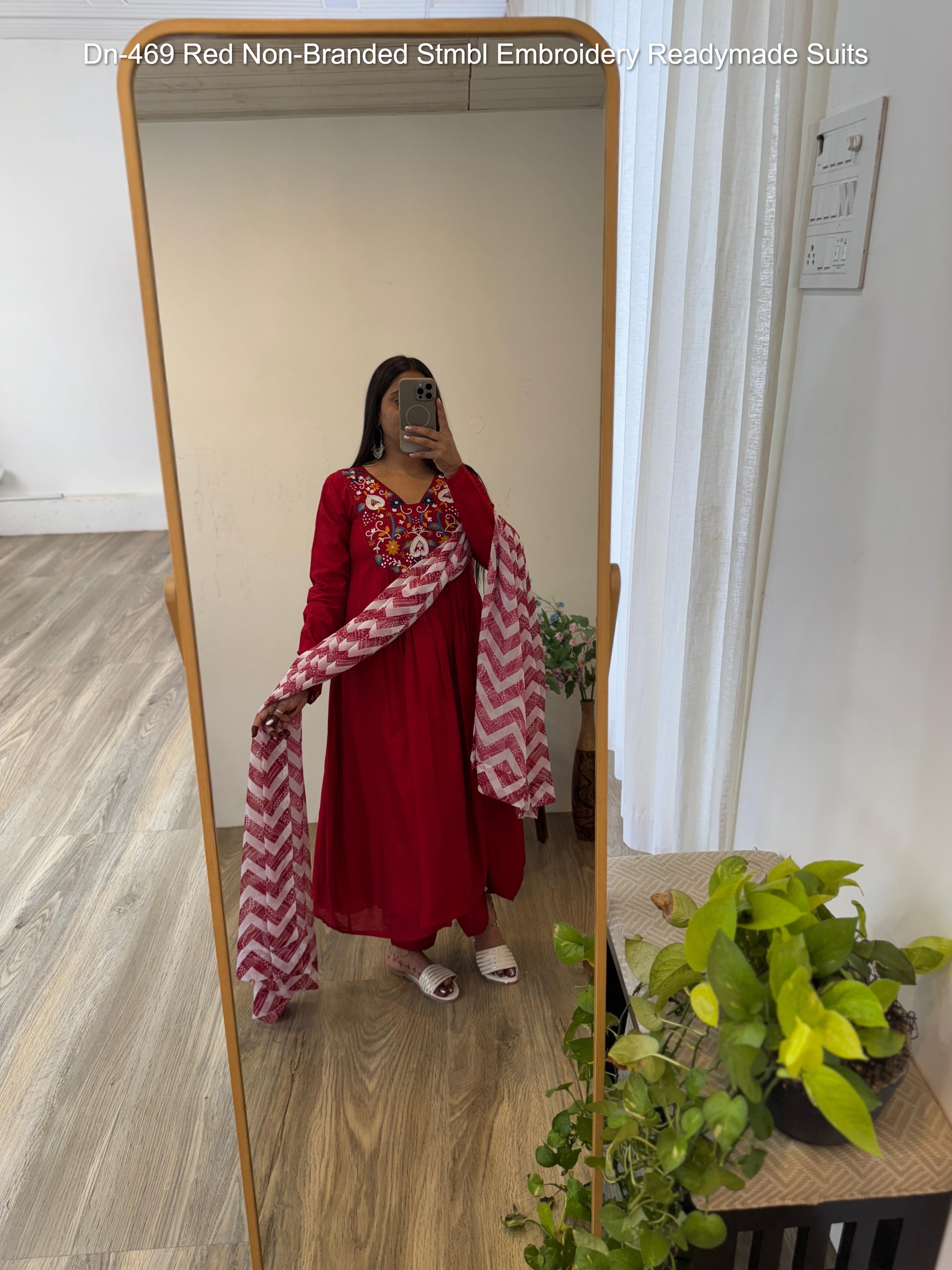 Dn-469 Red Non-Branded Stmbl Embroidery Readymade Suits